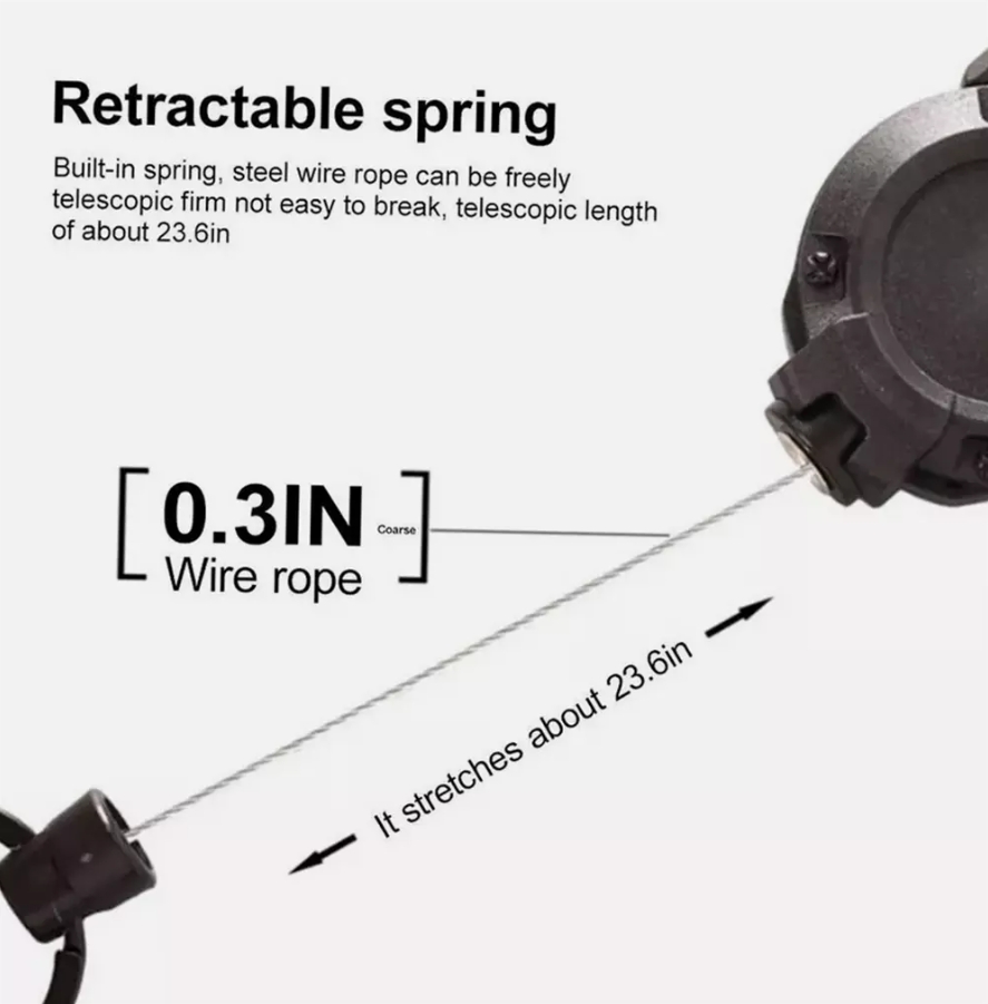 【Heavy Duty Retractable Keychain】The Outdoor Automatic Retractable Wire Rope Anti-Theft Tactical Keychain Built With 0.8 mm Stainless Steel Cord Retraction Force Up To 7.0oz, Strong Enough To Support The Weight Most Of Your Keys Without Sliding Down All The Time.