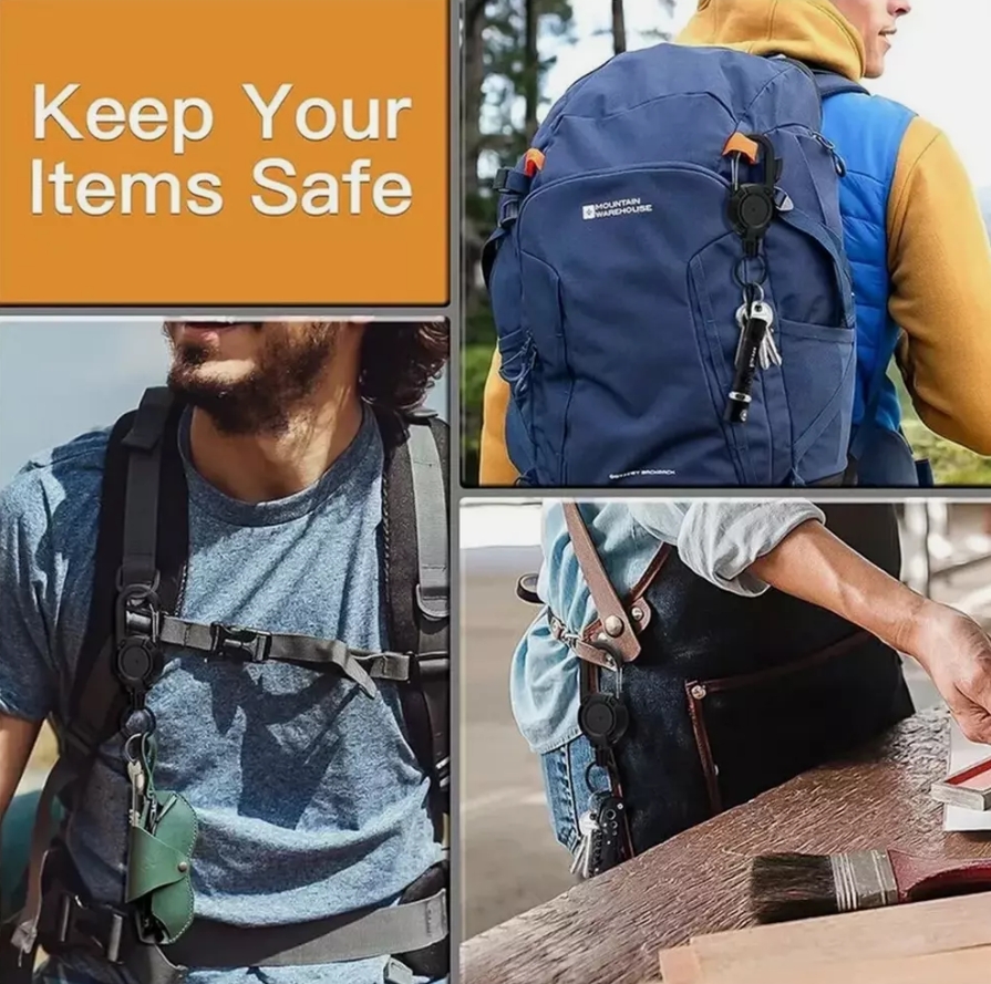 【Multi-Function】Retractable Portable Key Holder Rings Equipped With Sturdy Carabiner,Durable And Practical,With Spring-Loaded Gate Quick Attach/Detach To Belt, Pocket, Strap Or Loop.The Gear Mechanism Automatically Winds The Cable - Strong Enough To Pull Dozens Of Keys Or Small Tools.