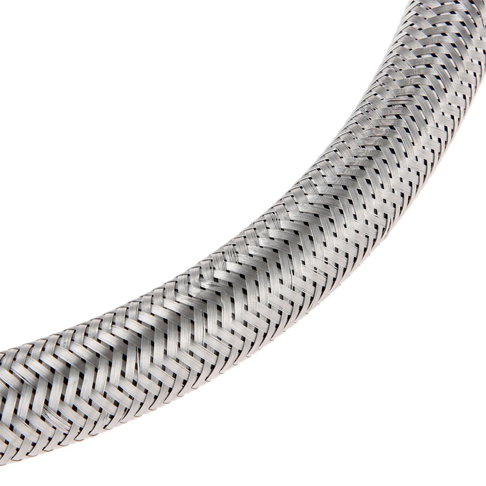 Stainless steel braided to holds up much better and longer when exposed to the sun and weather.