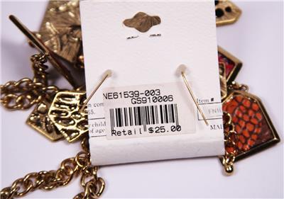 19" Colorful Orange, Red & Gold Geometric Shapes On Gold Tone Chain Necklace & Earring Set