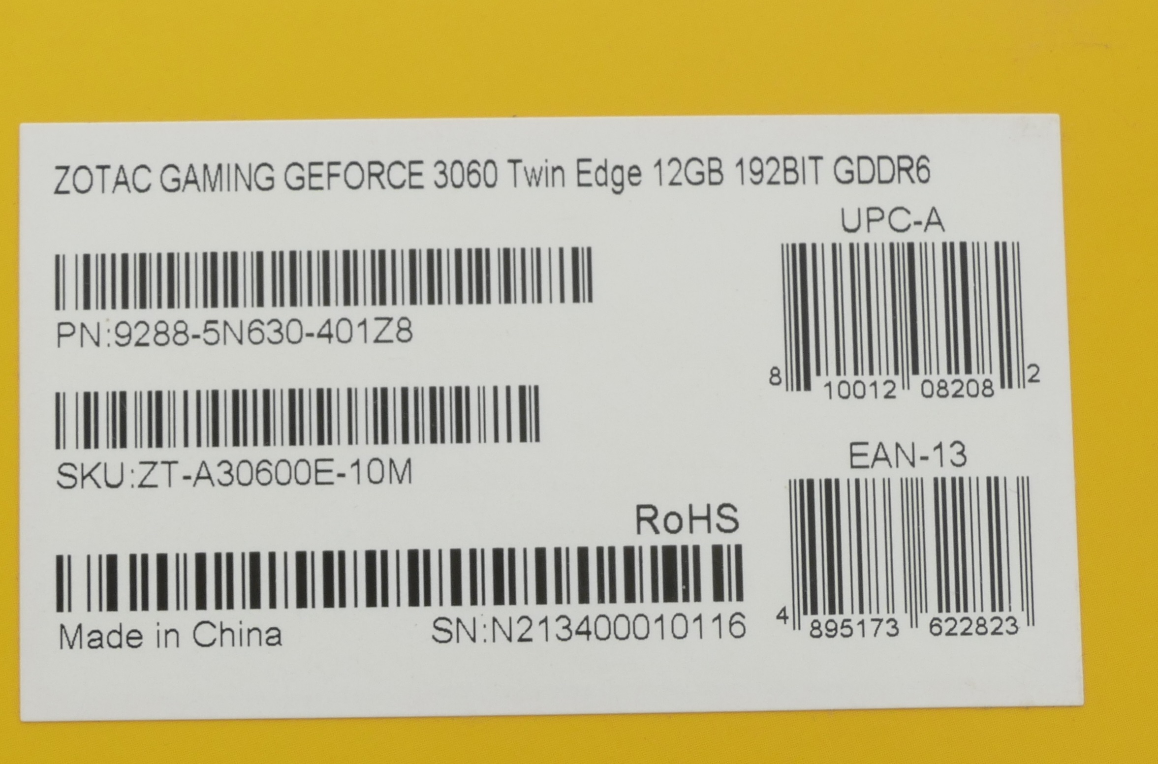 ZOTAC GAMING GEFORCE 3060 Twin Edge 12GB |