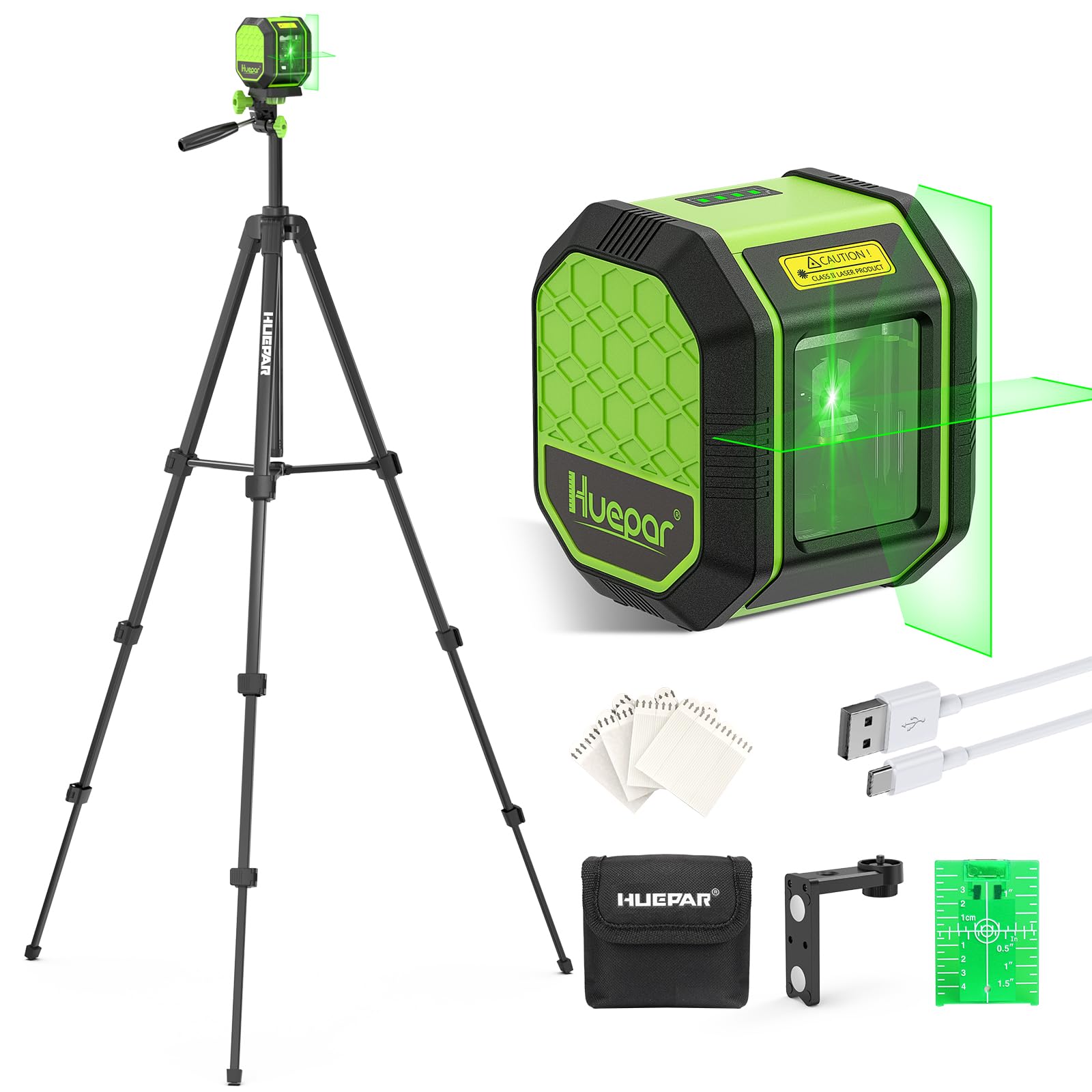 Laser Level with 60 Inch Tripod, Huepar 100Ft Self Leveling Green Beam