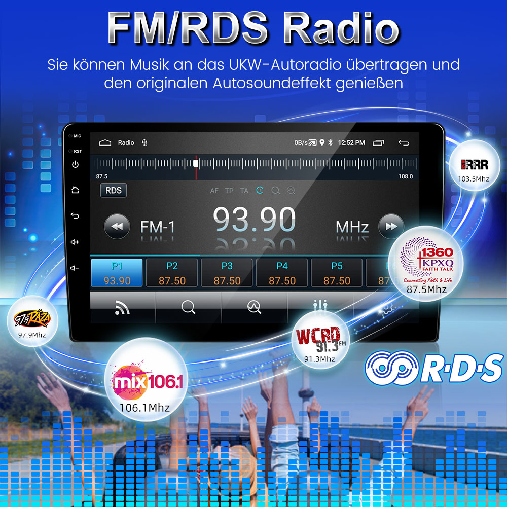 ● FM/RDS-Radio: Empfangen Sie Radiosender in klarer Klangqualität. Hören Sie jederzeit Musik, Nachrichten und Verkehrsinformationen.