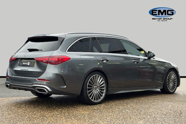 EMG Haverhill is pleased to offer this stunning Mercedes C200 MHEV 1.5 AMG Line Premium G-Tronic Automatic Estate finished in Selenite Grey premium metallic paint with full Black Leather upholstery! This 1-owner car has covered 40641 miles and comes with dealer history dated as: Feb 23 at 9870 miles and Feb 25 at 32001 miles. It will also come serviced and with a new MOT – assuring you complete peace of mind with your purchase! Powered by a 1.5 petrol engine that produces 204 horsepower and paired with a 9-speed semi-automatic transmission and Mild-Hybrid technology this euro 6 compliant Estate gives a responsive and engaging drive experience capable of achieving 0-62 mph in 7.5 seconds and returning 40.9 mpg on a combined fuel cycle! With a group 40E insurance rating this vehicle rates well against competitors in its class and makes a compelling choice for those looking for a blend of luxurious sports styling performance and storage capacity! The AMG Line Premium model benefits from a wealth of specification that includes Satellite Navigation Apple & Android Connection Climate Control 18-Inch Alloys Dusk-Sensing Headlights with High Beam Assist Rain-Sensing Wipers Cruise Control Rear Privacy Front & Rear Park Sensors 360 Camera Heated Front Seats BLIS Lane Assist USB Port Rear Seat Isofix DAB Radio and so much more! At EMG Haverhill every used car completes a vigorous multi-point point mechanical inspection and road test by our fully qualified technicians before being handed over. For further details please call our friendly sales team on to arrange a test drive a personalized video of this exact vehicle part exchange valuation or to answer any other questions you may have. EMG Haverhill is a family-run business supplying new and used vehicles across the UK for over 50 Years and look forward to offering you a wonderful customer experience from end to end of your purchase journey! COMPETITIVE PCP FINANCE PLANS AVAILABLE - Ask for your quote today!