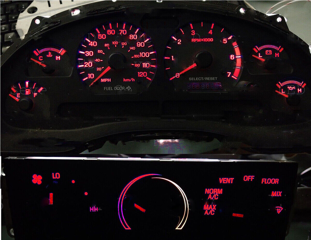 Red Led KIT for Ford Mustang 99-04 Instrument Cluster Gauge + Climate control