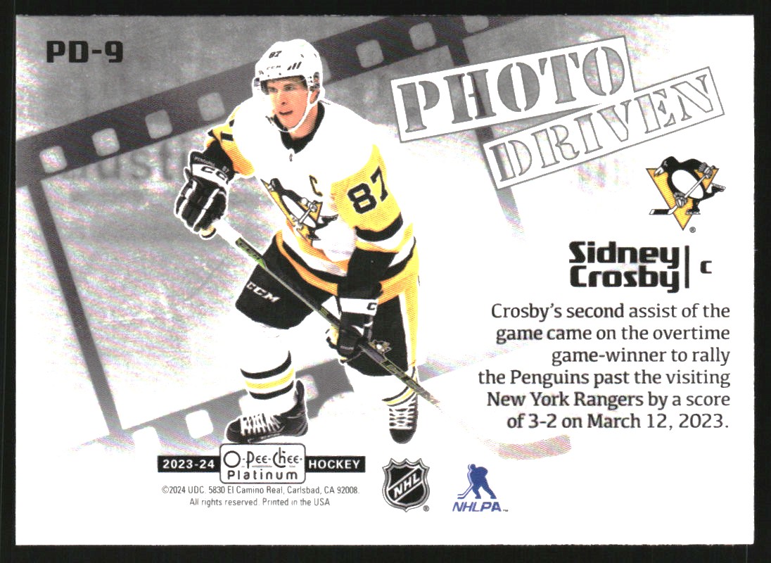 2023-24 O-Pee-Chee Platinum Photo Driven #PD9 Sidney Crosby - HKY