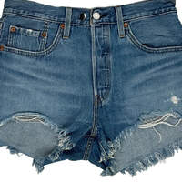 Levis Denim Shorts, fit a UK size 10 with a 30″ Waist.