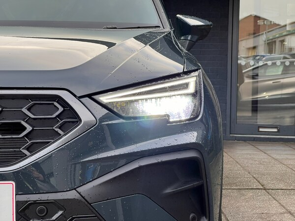 Seat Arona 1.0 TSI 115 FR Sport 5dr DSG..'Lights On' Reminder warning buzzer, 10'' Digital cockpit, Digital clock, E-call, Electric speed sensitive power steering, Front parking sensors, Full link smartphone integration with mirror link, wireless apple carplay, Google android auto + USB Type C cable for apple and android devices, Low fuel warning light, Outside temperature display, Rear view camera, RPM counter, SEAT Drive profile - Four different models normal-sport-eco-individual, steering response, throttle response and gear shifts mode, Trip computer, Wireless phone charger, 9.2'' colour touchscreen with navigation system, voice control and USB port (type c), Bluetooth interface for hands free and audio streaming, DAB digital radio and AM/FM radio, Steering wheel mounted audio controls, Anti theft roof antenna, Auto dimming interior rear view mirror, Automatic activation of hazard warning lights, Black roof rails and window surrounds, Body coloured bumpers, Body coloured door handle inserts, Dark tinted rear windows, Electric front/rear windows, Electrically adjustable, heated and folding door mirrors, Front fog lights with cornering function and rear fog light, LED 3rd brake light, LED daytime running lights, LED rear tail lights and licence plate lights, Protective side mouldings, Rain sensing wipers, Rear side wing doors, Rear spoiler, Rear window wash/wipe, Roof colour door mirrors, SEAT design Full LED automatic headlamps with dynamic headlight range control, coming and leaving home feature, Twin exhaust pipe styling with double flow exhaust pipe, Visible VIN plate, 2 cupholders, 3 seat bench in 2nd row, 60/40 split folding rear seat, Aircare filter, Black headliner, Cloth upholstery with embossed textile/Sport bucket seats, Double boot floor, Driver sunvisor with covered mirror + card holder, Dual zone climate control, Front courtesy light with front reading lights, Front seat back storage pockets, Heated front seats, Height adjustable front seats, Height/reach adjustable steering column, Illuminated air vent surrounds, Interior ambient lighting, Interior light in footwell, central console and door panel, ISOFIX points in outer rear seats with top tether anchorage points, Passenger sunvisor with vanity mirror, Perforated flat bottomed leather steering wheel/gear knob/handbrake with red stitching and FR logo, Red coloured interior air vents, Single front passenger seat, Steering wheel mounted gearshift paddles, Two front and three rear height