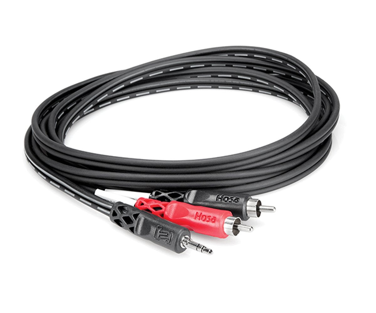 Stereo Breakout cable by Hosa with 3.5 mm TRS to Dual RCA connectors. This cable is designed to connect a digital audio player or similar device to a stereo system. It is ideal for connecting a portable media player, laptop, or similar device to a hi-fi receiver.