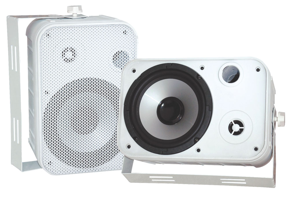 These white Pyle indoor/outdoor waterproof speakers are excellent for use on boats, decks, patios, or by the pool - anywhere outdoors. They're completely waterproof, thanks to the heavy duty ASB construction. And they're powerful - 500 watts max.
