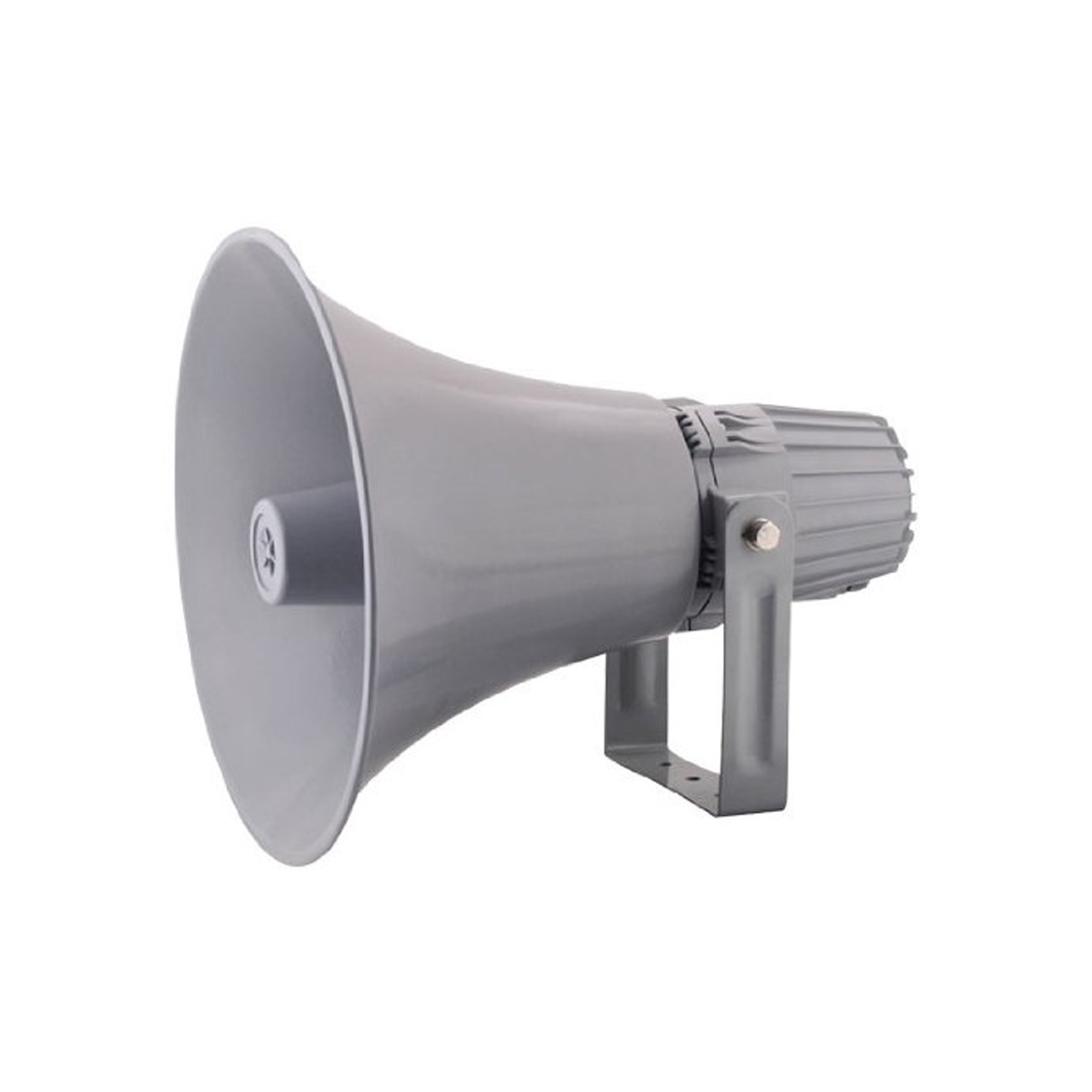This 12.7' indoor/outdoor horn speaker is great for your 70 V or 100 V audio system. Perfect for outdoor PA systems when you need your sound heard far and wide. This 60 watt speaker includes 70 V and 100 V transformers tappable at 60, 30, 15, and 7.5 watts. Includes mounting bracket and hardware for easy installation. Let your voice be heard with the PHSP12. Color: grey.