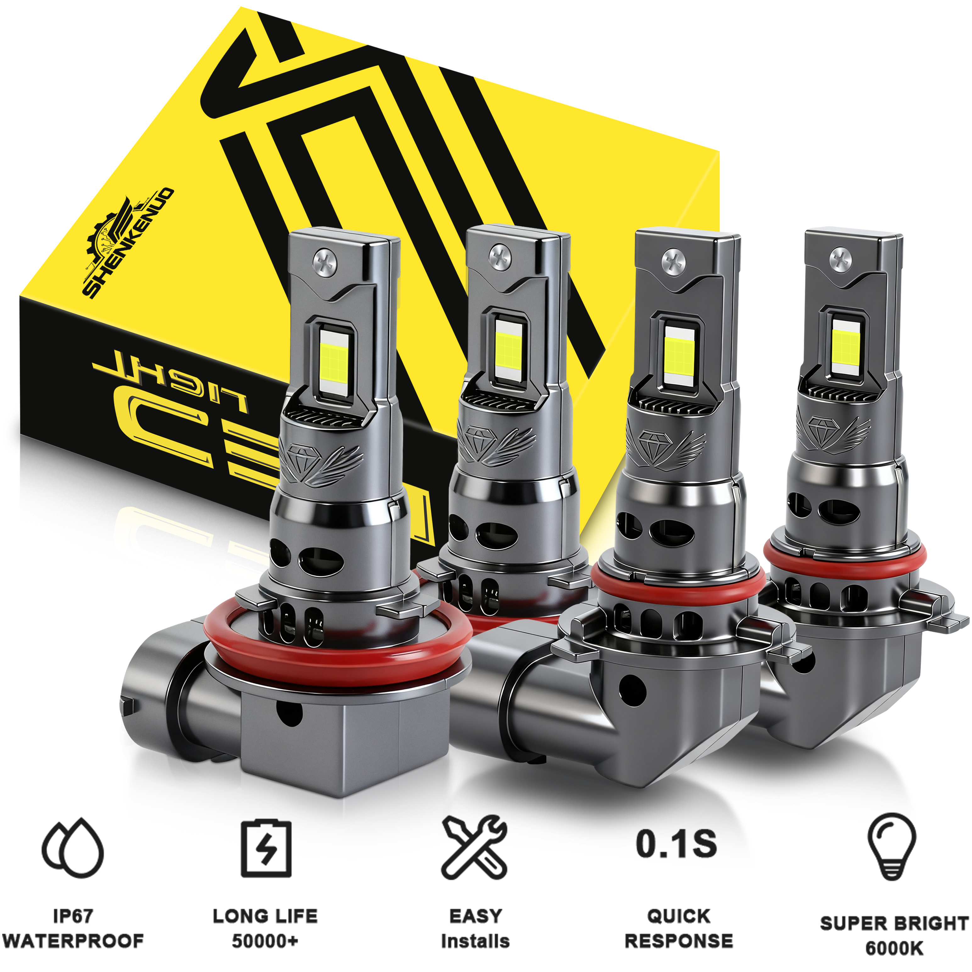 1.Plug Type: 9005/HB3 + H8/H9/H11