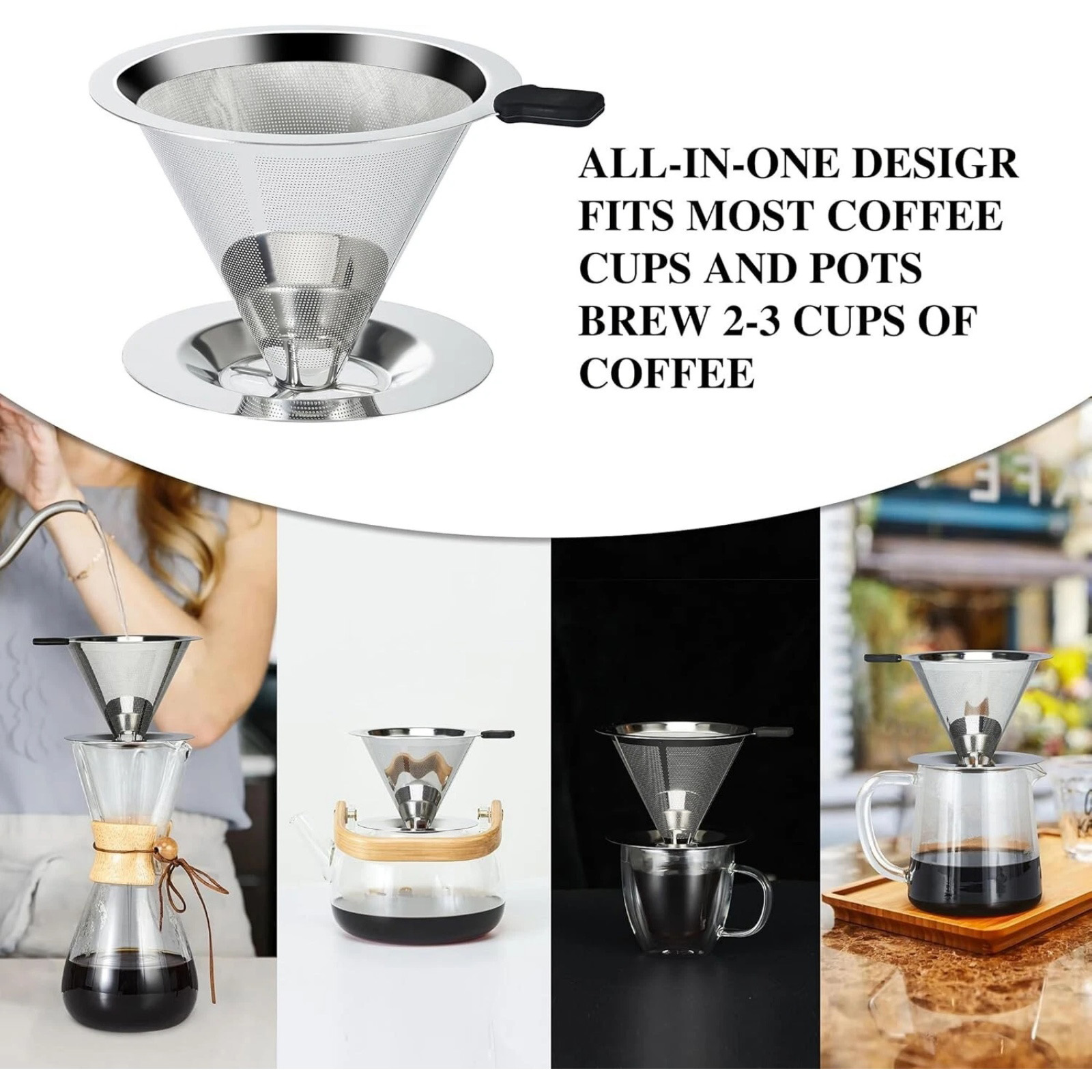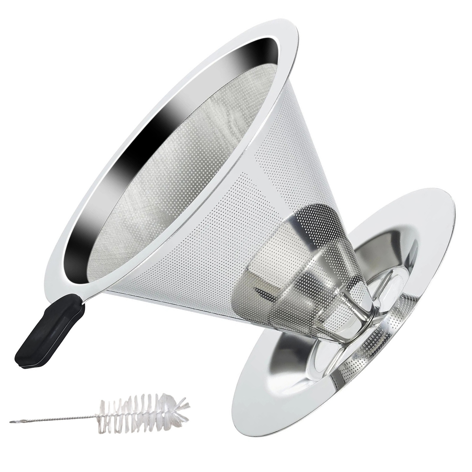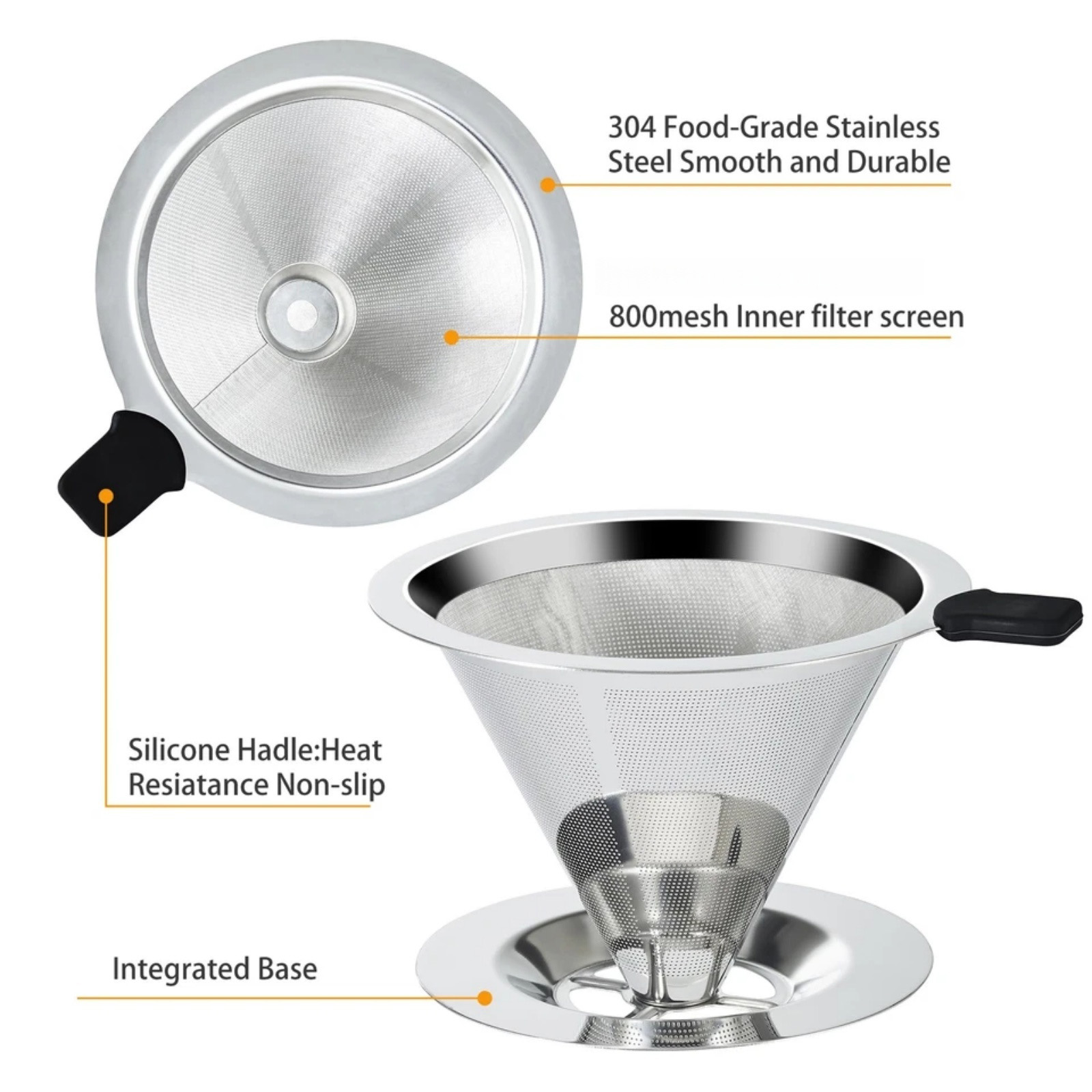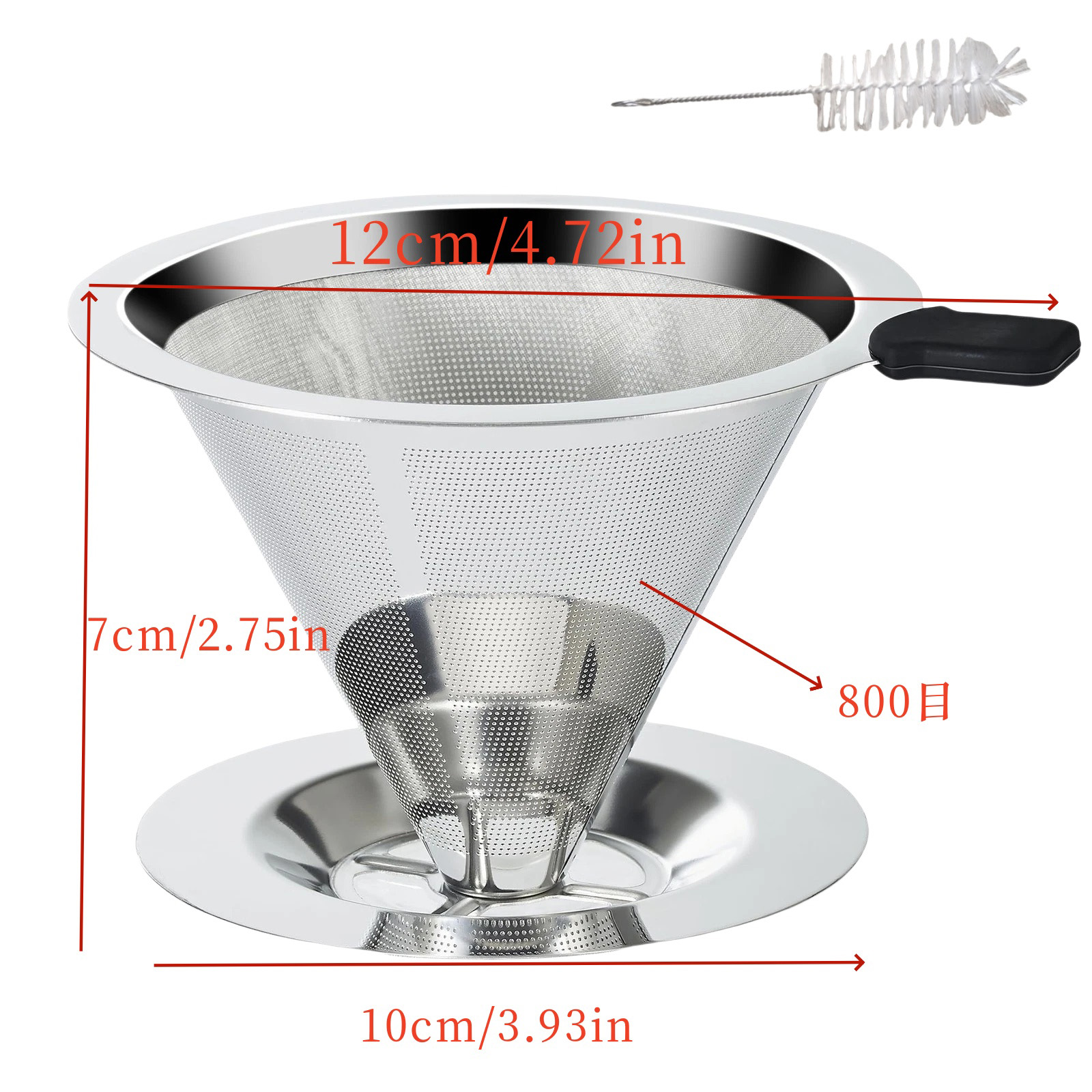 Double mesh design: The coffee filter is made of high-quality 304 stainless steel. The double-layer filter screen can prevent any Used coffee grounds from passing through, no grounds end up in your cup.