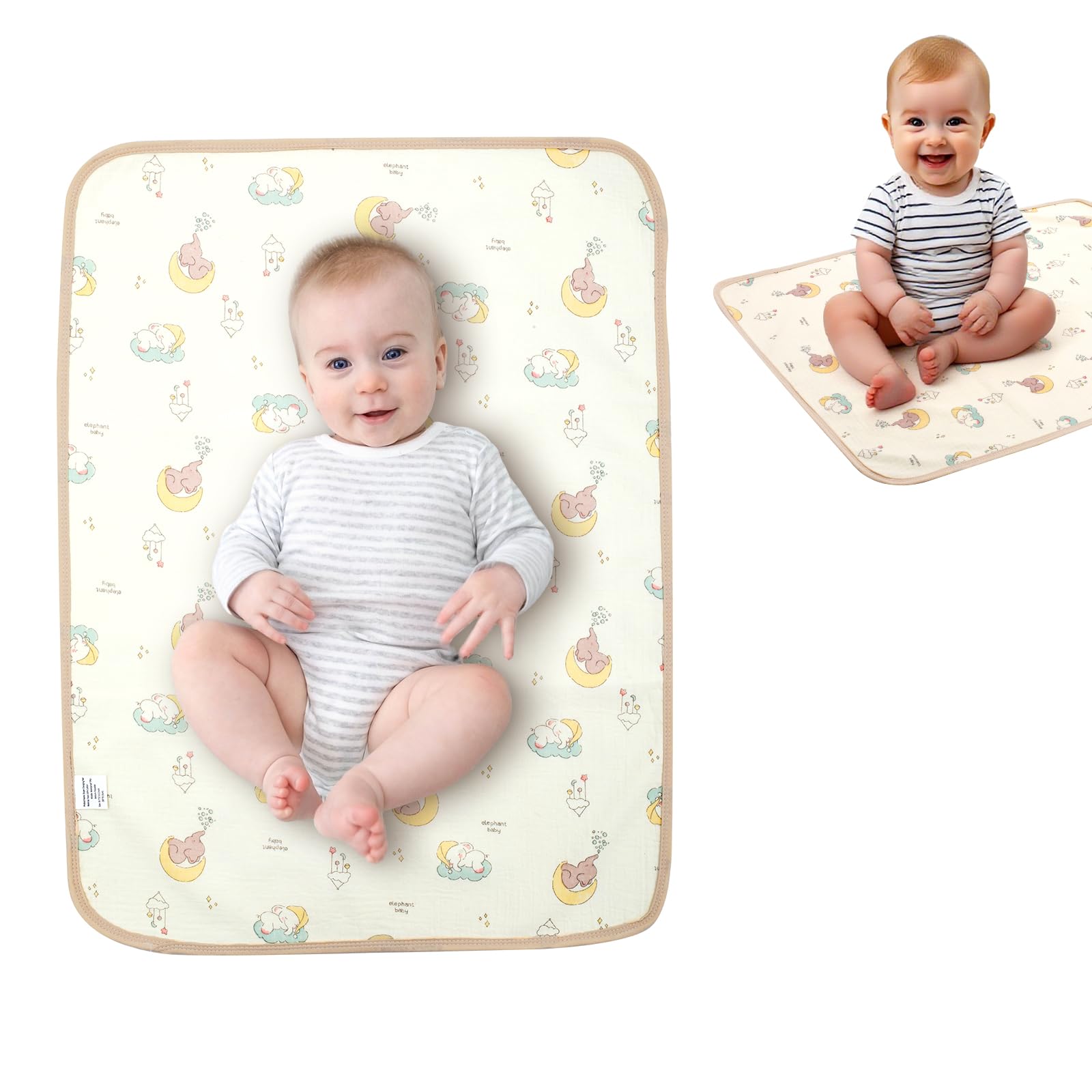 Features: Soft, breathable, lightweight, compact, portable, and leak-proof.Premium material: Made of soft muslin cotton, chemical-free, and latex-free, effectively reducing friction.Highly Absorbent: Quickly absorbs water, locking in liquids and keeping it dry.Waterproof: The filling layer is made of TPU material, effectively preventing liquid leaks and effectively sealing out contaminants.Versatile: This portable changing mat is suitable for babies, adults, patients, and pets. It is also a great choice for baby showers for both men and women.Specifications:Material: Muslin Cotton, Polyester, TPUWaterproof: YesMachine Washed: YesSize: 19.69 x 27.56 inchesPattern: ElephantPackaged Inclunded:1 x Baby Changing Diaper Pad