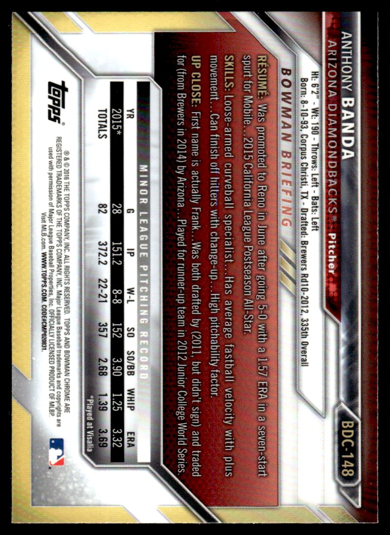 | 2016 Bowman Draft Picks & Prospects Chrome Anthony Banda Arizona Diamondbacks |
