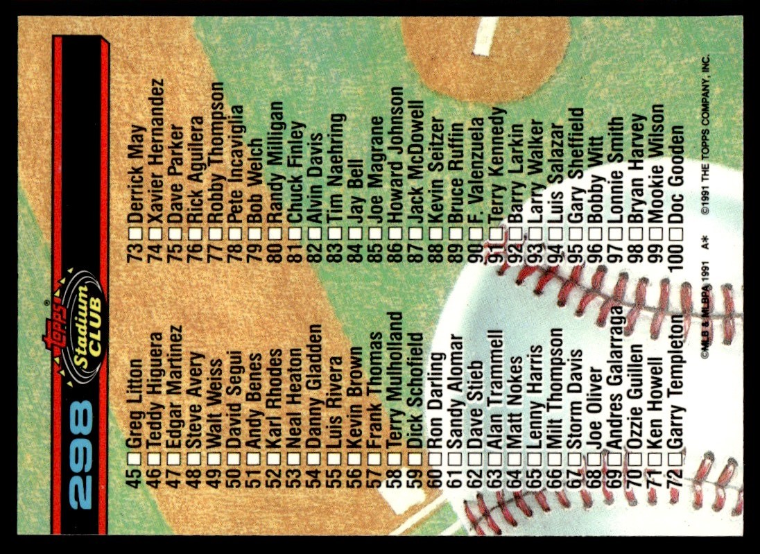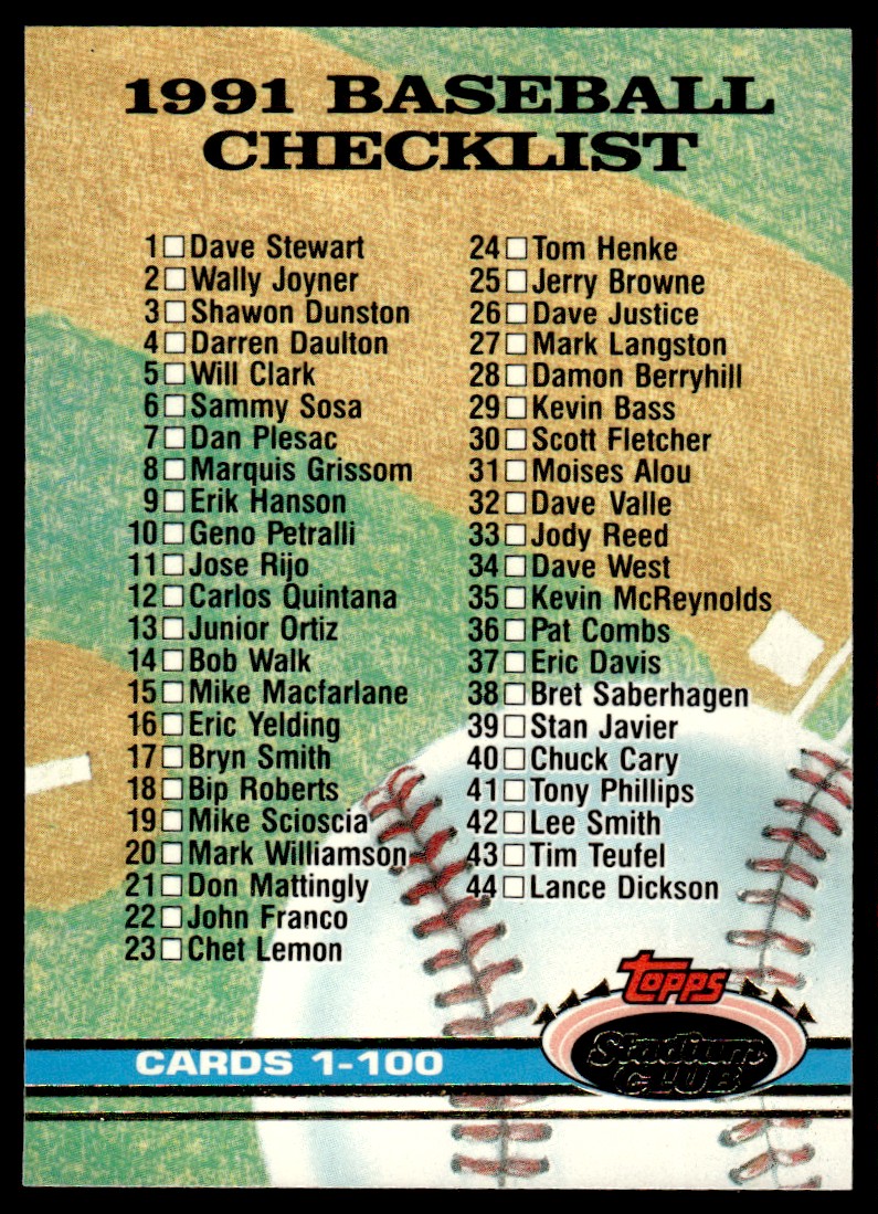 | 1991 Stadium Club Checklist 1-100 #298 |