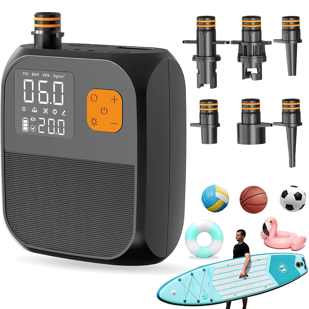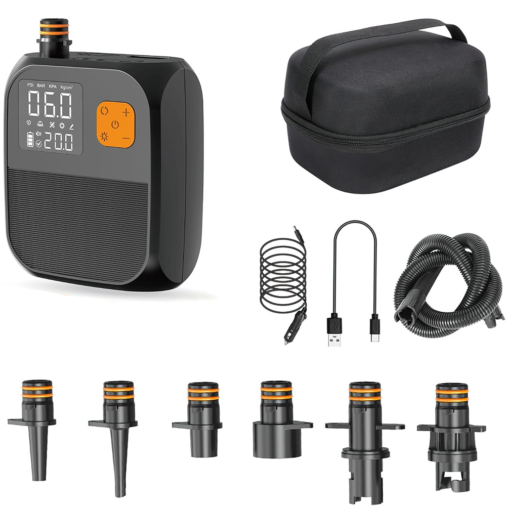 Effiziente starke Inflation:Unsere Pumpe kann bis zu 25 PSI aufblasen, was zu einem stärkeren Luftstrom und einer schnellen Inflation führt. Die leistungs starke Hochdruck luftpumpe verfügt über 6 verschiedene Düsen und einen 0,8 m hohen Luft schlauch, sodass Stand-Up-Paddle-Boards, Kajaks, Boote und mehr mühelos aufgeblasen werden können.