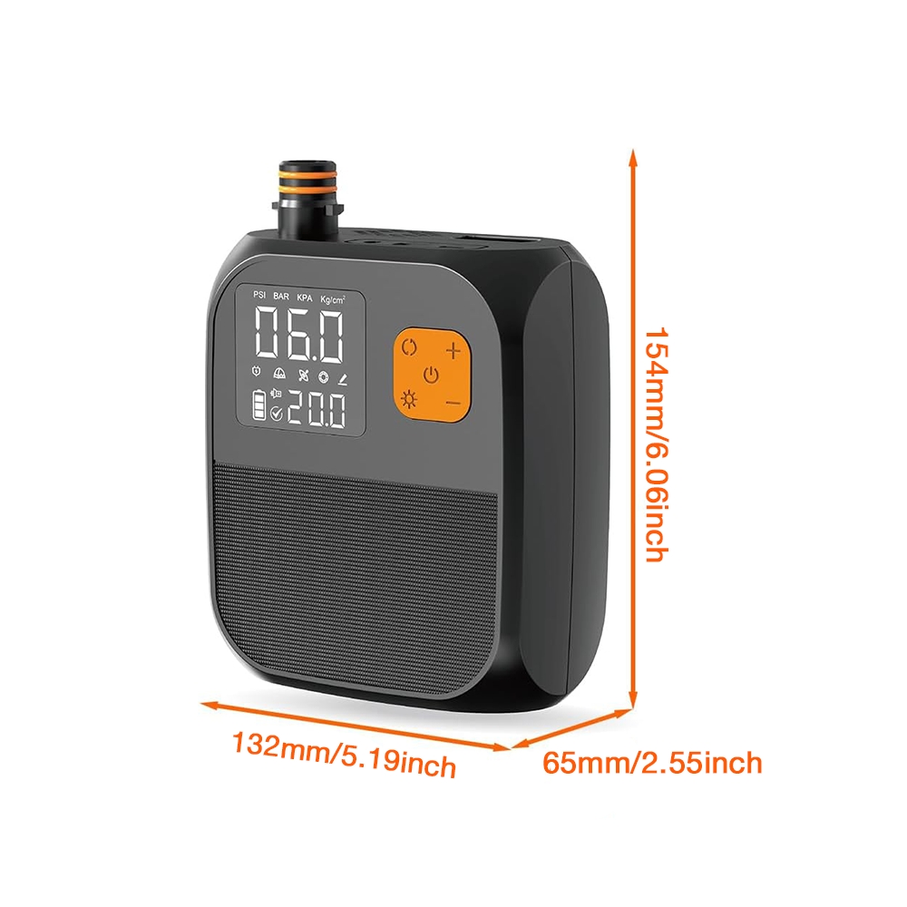 Präzise Druck überwachung:Ausgestattet mit einem digitalen Bildschirm können Sie den Druck und die verbleibende Ladung in Echtzeit überwachen. Mit genauen Messwerten und der Fähigkeit, frei zwischen Einheiten wie PSI, BAR, KPA und KG/CM² zu wechseln, können Sie mühelos das optimale Inflation niveau für verschiedene aufblasbare Produkte sicherstellen.