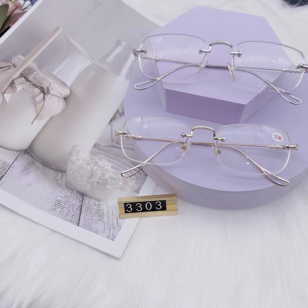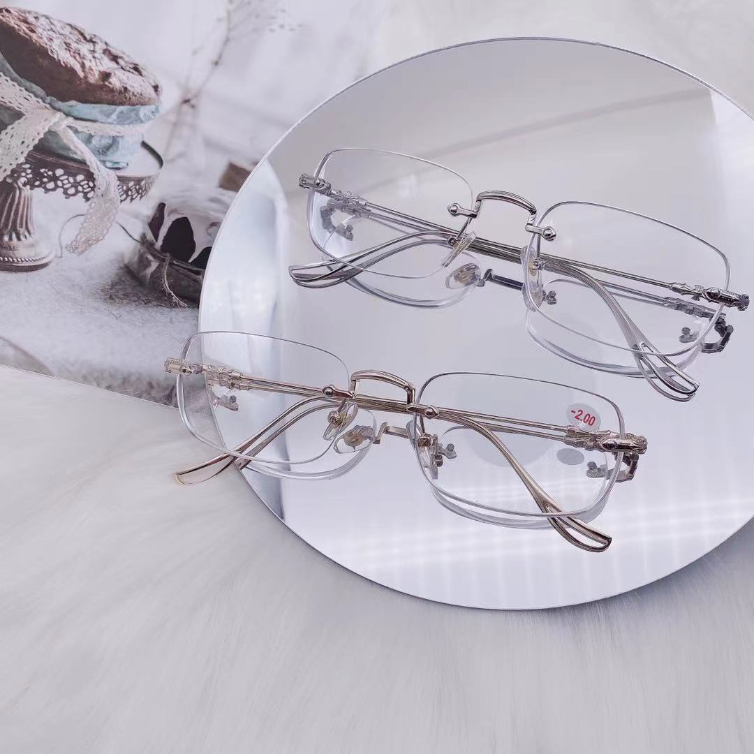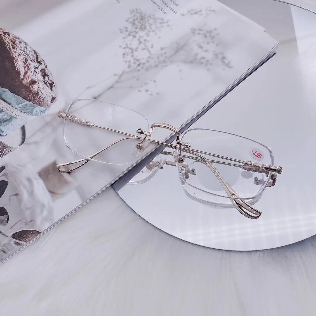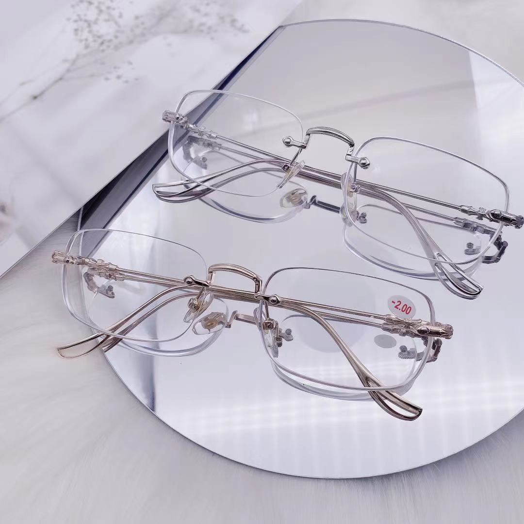 Fashion Rimless Anti Blue Light Myopia Glasses Metal Frame 0~-500