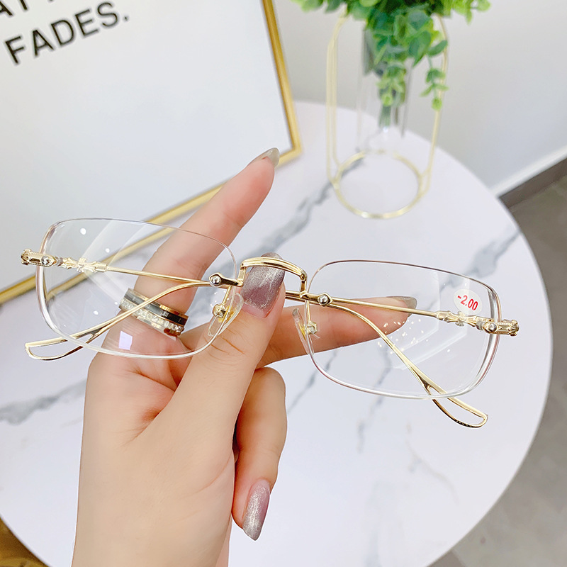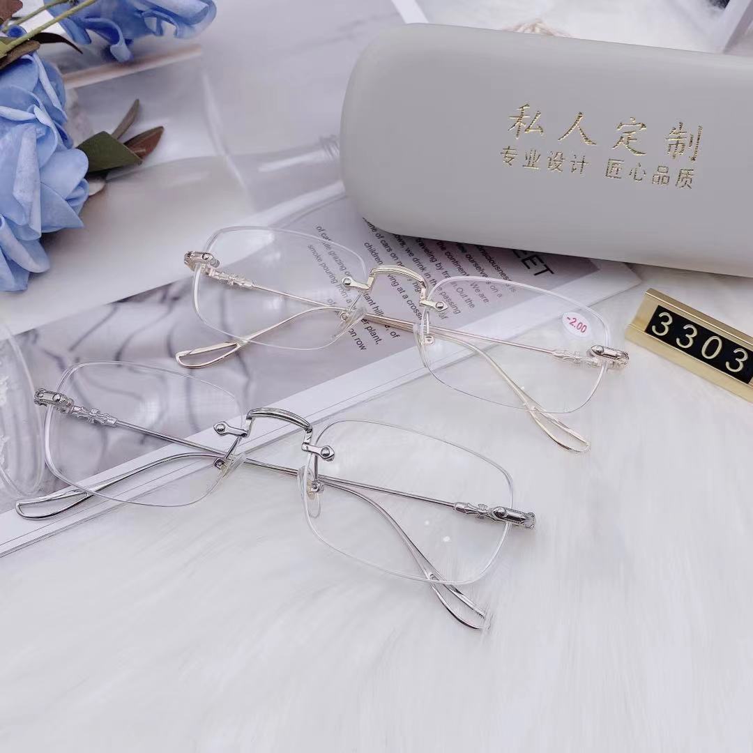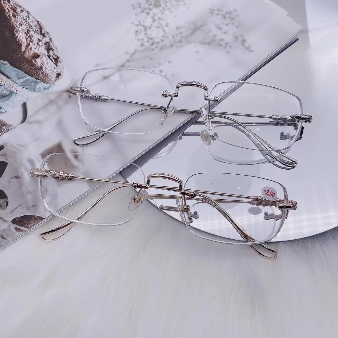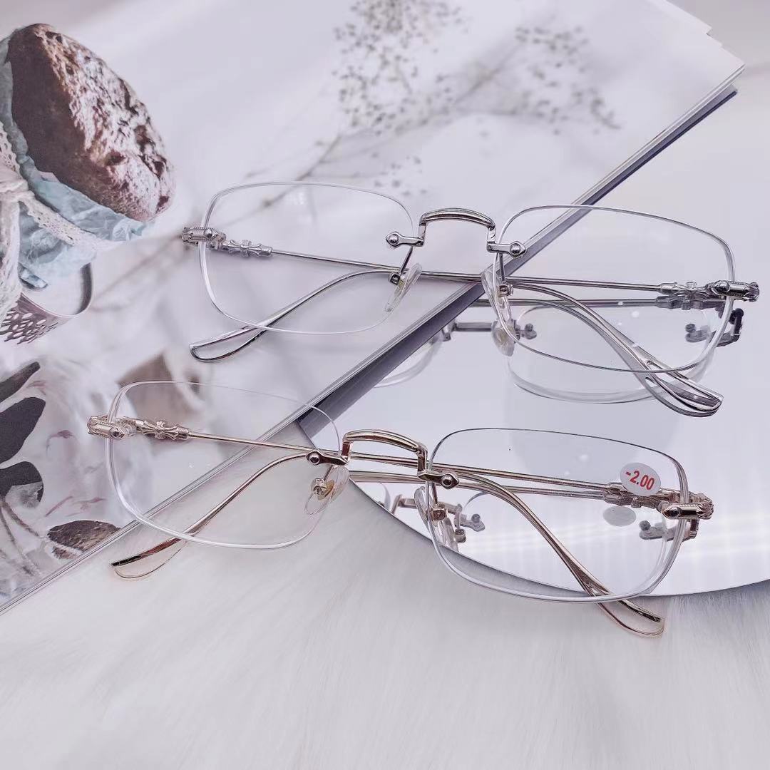 Fashion Rimless Anti Blue Light Myopia Glasses Metal Frame 0~-500