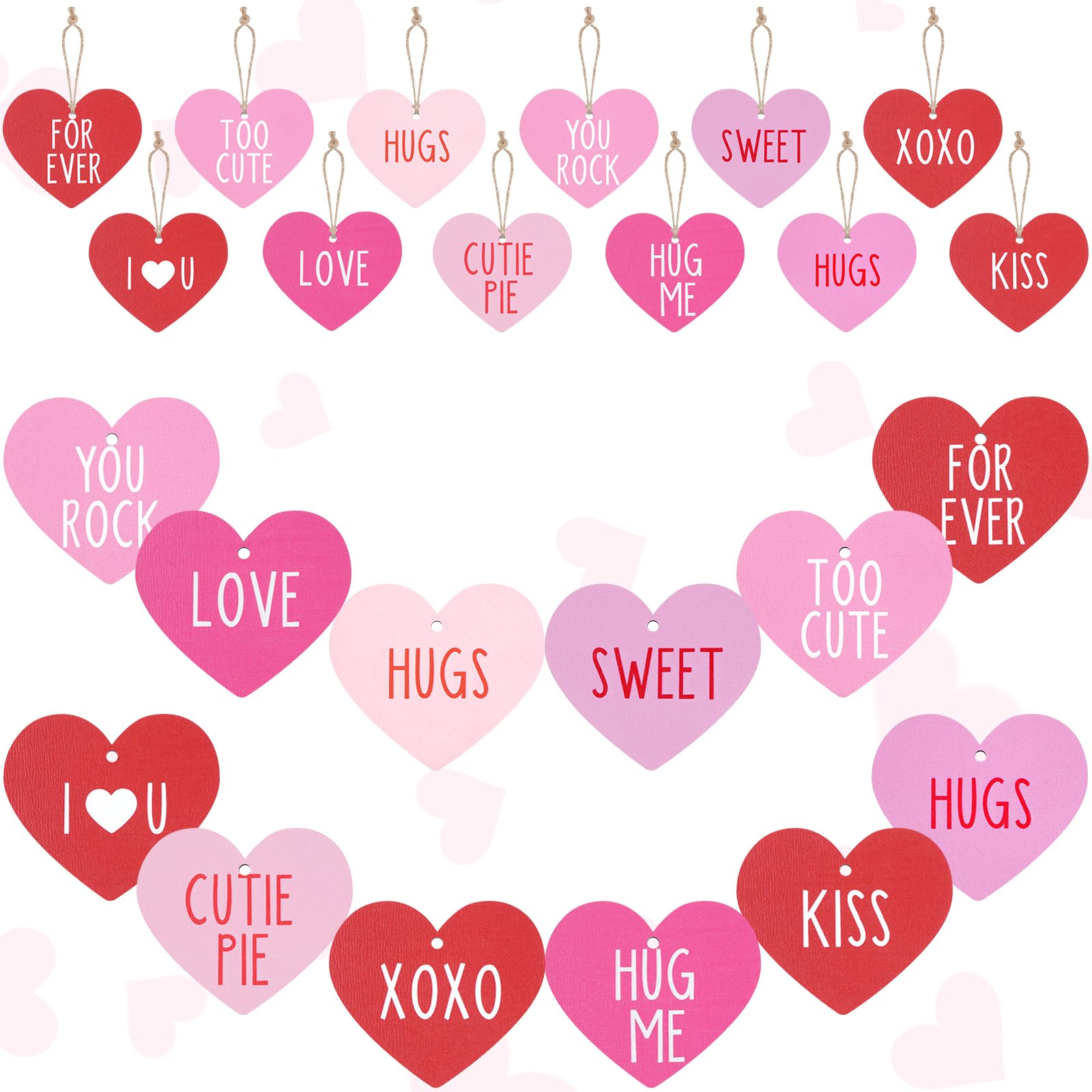 - Easy to Use: Our conversation heart ornaments can be hanged on the valentine’s tree fireplace, door, wall or other places you like by using the string from our product through the hole at the top of the wood tags, easy to use, bring you and your family a romantic and sweet experience.