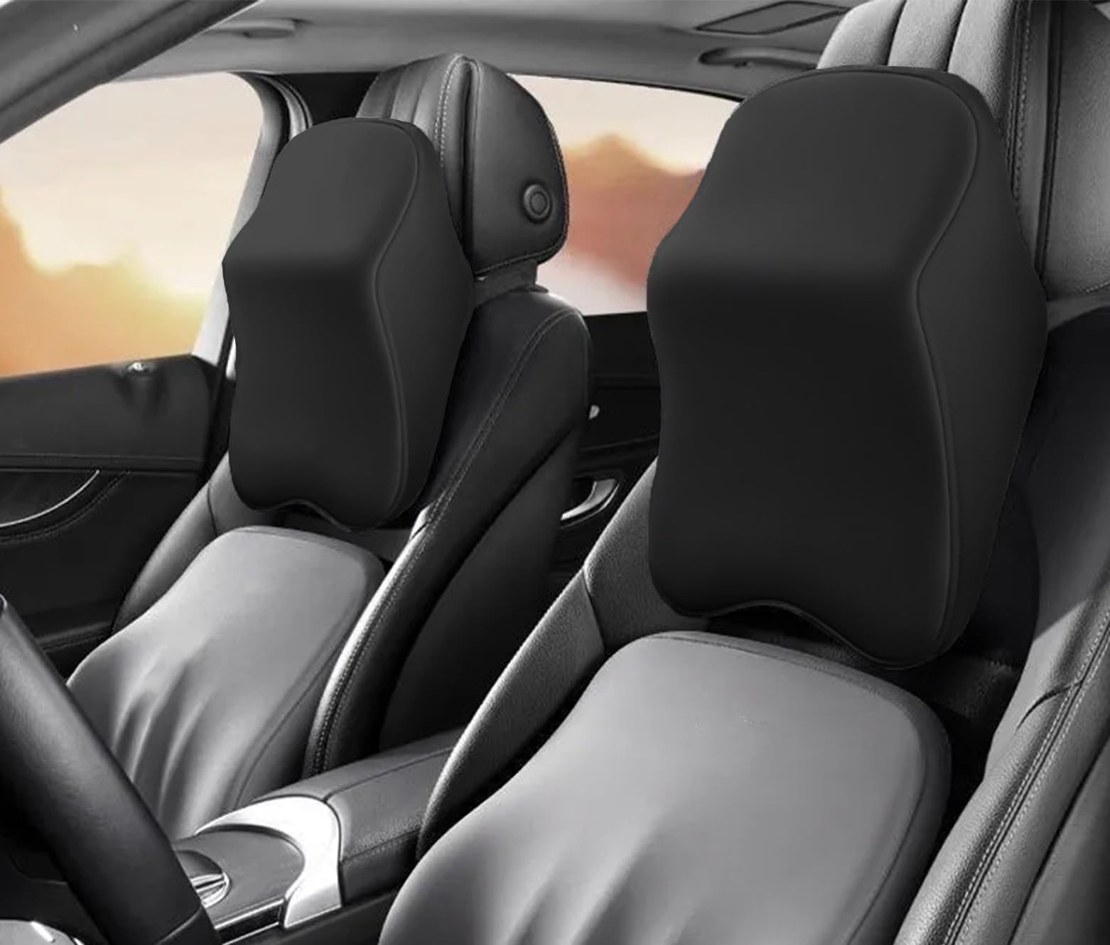 Born for comfort, make driving a pleasure! Do you always feel exhausted during long-distance driving due to stiff neck and sore shoulders?This car memory headrest is designed specifically to address pain points,with a three-point wrap around support system (back of the head+neck+shoulders) that scientifically disperses pressure and conforms to the natural curvature of the human body, making every journey easy and enjoyable. Packaging item: 2 x ergonomic car neck pillows ✅ Space Memory Cotton Ergonomic automobile headrests are made of ergonomic grade memory foam cotton, which is soft to the touch but full of support.They automatically shape when exposed to body temperature and perfectly fit the head and neck curve.Whether driving on bumpy roads or for long periods of time, it can cushion vibrations, reduce muscle fatigue, stay firm for a long time without collapsing, and provide breathability without sweating. ✅ Sitting posture correction The car memory cotton headrest is like a pair of gentle hands supporting the head, preventing "shaking the head" while driving.Relieve cervical pressure when leaning back, stabilize the head without deviation when leaning sideways, help correct poor sitting posture such as hunchback, and protect spinal health. ✅ Environmentally friendly materials, safe to use The outer layer of the support headrest for General Motors vehicles is made of high-density breathable fabric, is soft ,and can be easily cleaned by wiping. Both men and women can use it with confidence. ✅ Multi scene adaptation✅ No tools needed! Comfortable support neck pillow with elastic straps compatible with 99% of car seat headrests,suitable for sedans, SUVs, and MPVs.Whether it's daily commuting, self driving travel, or business travel, install and enjoy it immediately,
