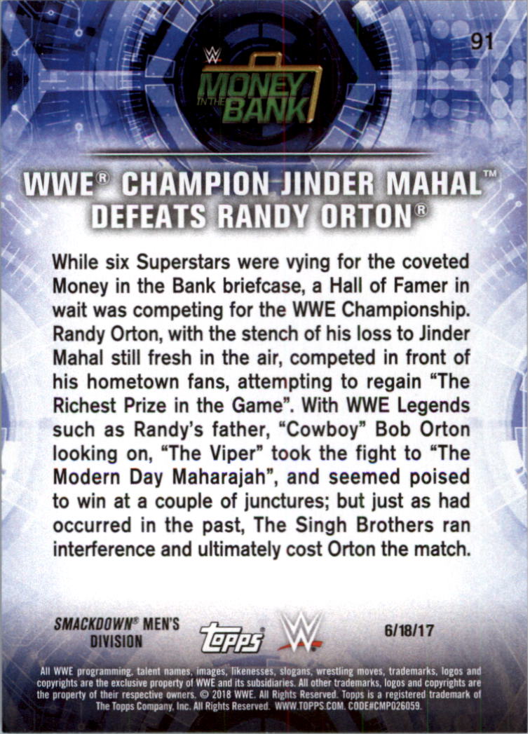 2018 Topps WWE Road to WrestleMania Bronze #91 Jinder Mahal Defeats Randy Orton