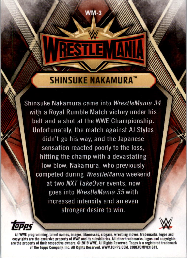 2019 Topps WWE Road to WrestleMania WrestleMania 35 Roster WM3 Shinsuke Nakamura