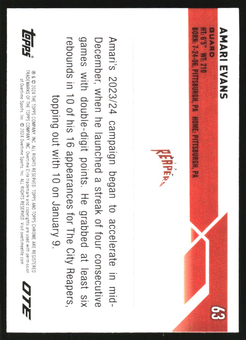 2023-24 Topps Chrome Overtime Elite #63 Amari Evans - BSK