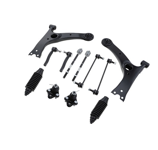 Components: 1x Front Left Lower Control Arm;1x Front Right Lower Control Arm;2x Front Stabilizer Bar End Link;2x Inner Tie Rod End;1x Left Outer Tie Rod End;1x Right Outer Tie Rod End;2x Front Lower Ball Joint;2x Rack & Pinion Bellow (Cut to fit)