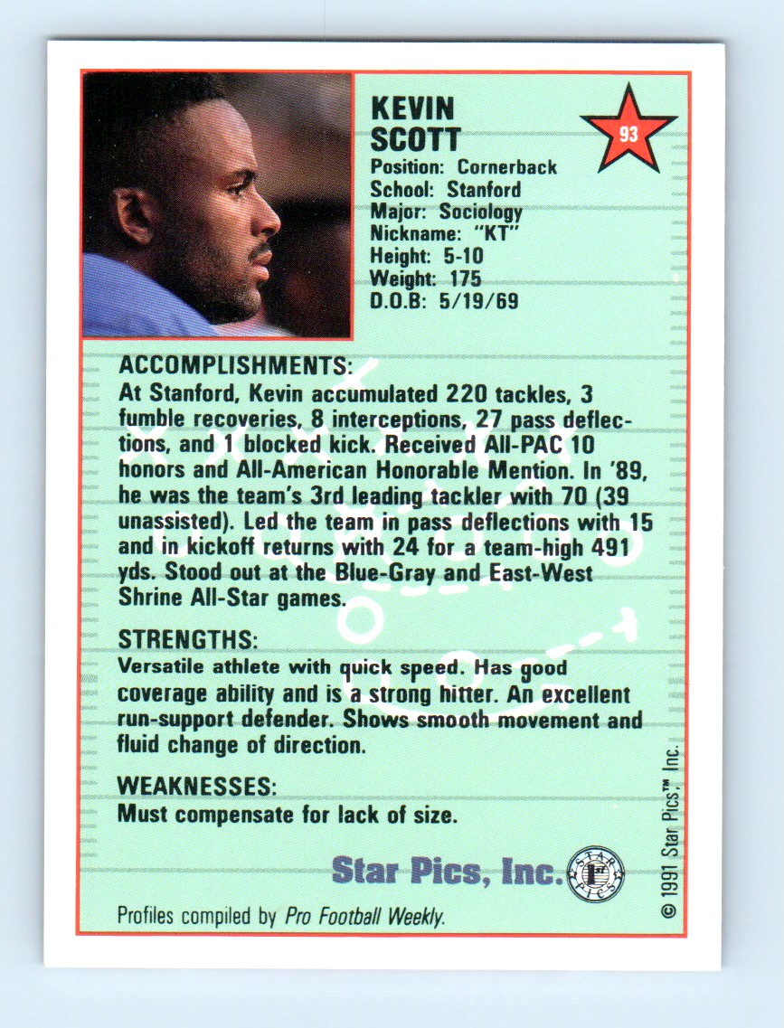 | 1991 Star Pics Kevin Scott Stanford Cardinal #93 |