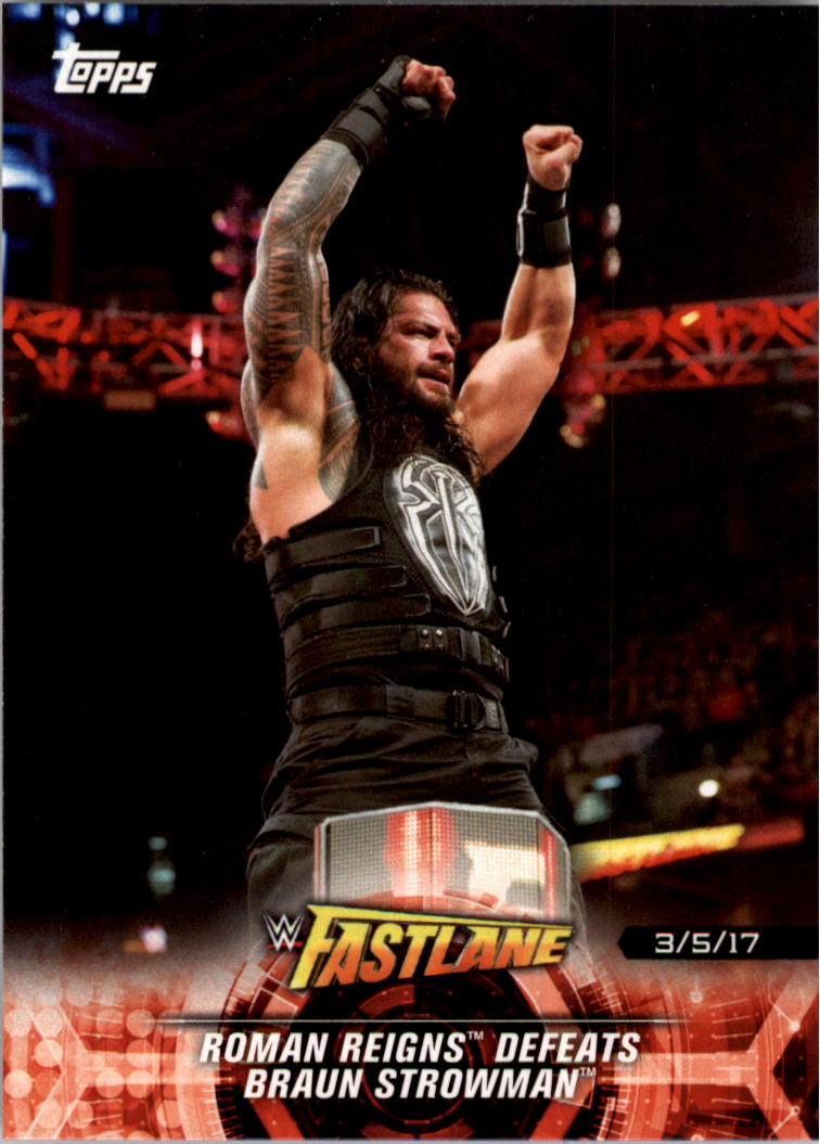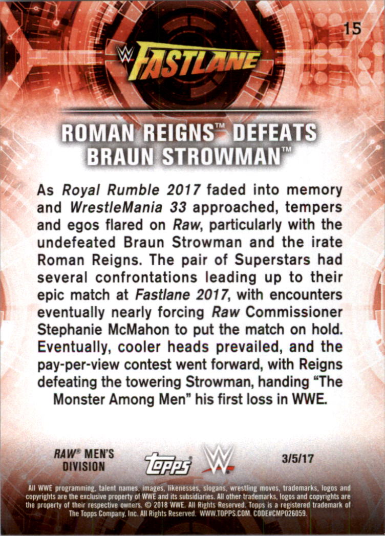 2018 Topps WWE Road to WrestleMania #15 Roman Reigns Defeats Braun Strowman WWE