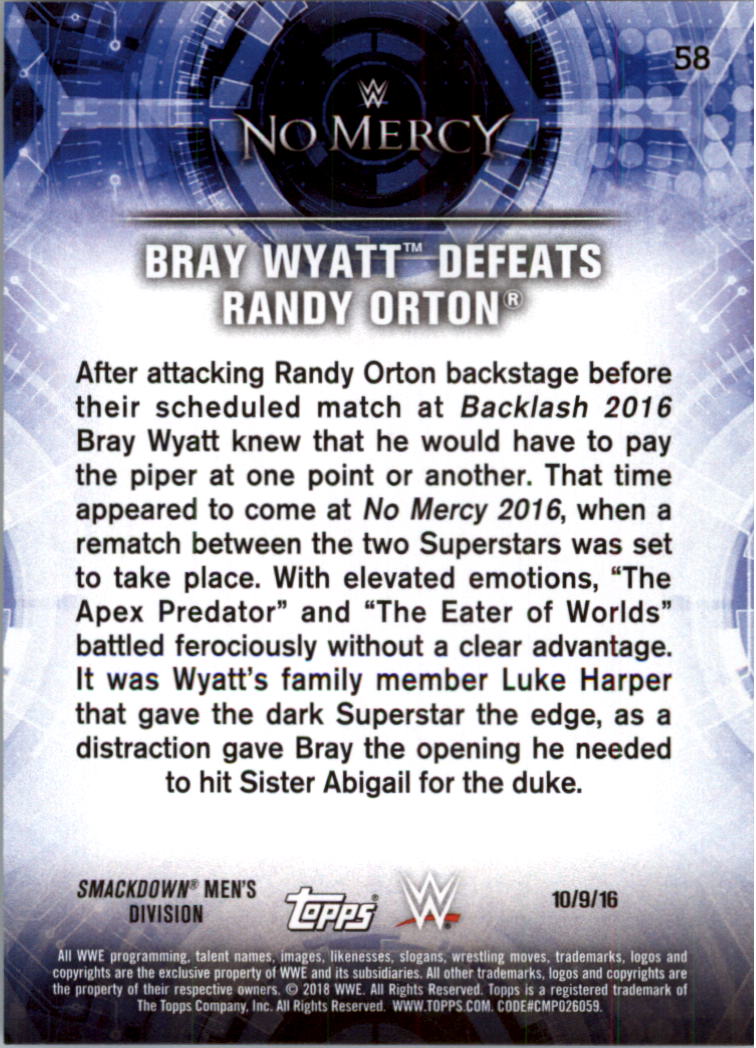 2018 Topps WWE Road to WrestleMania #58 Bray Wyatt Defeats Randy Orton - WWE