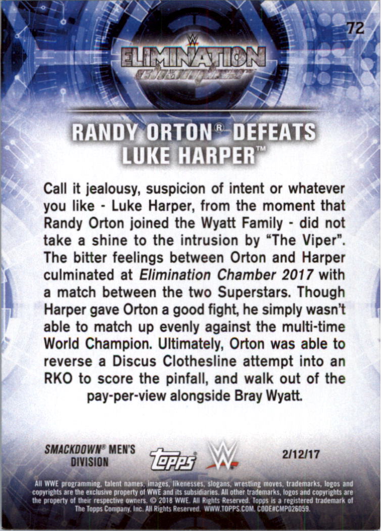 2018 Topps WWE Road to WrestleMania #72 Randy Orton Defeats Luke Harper - WWE