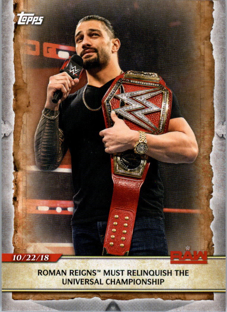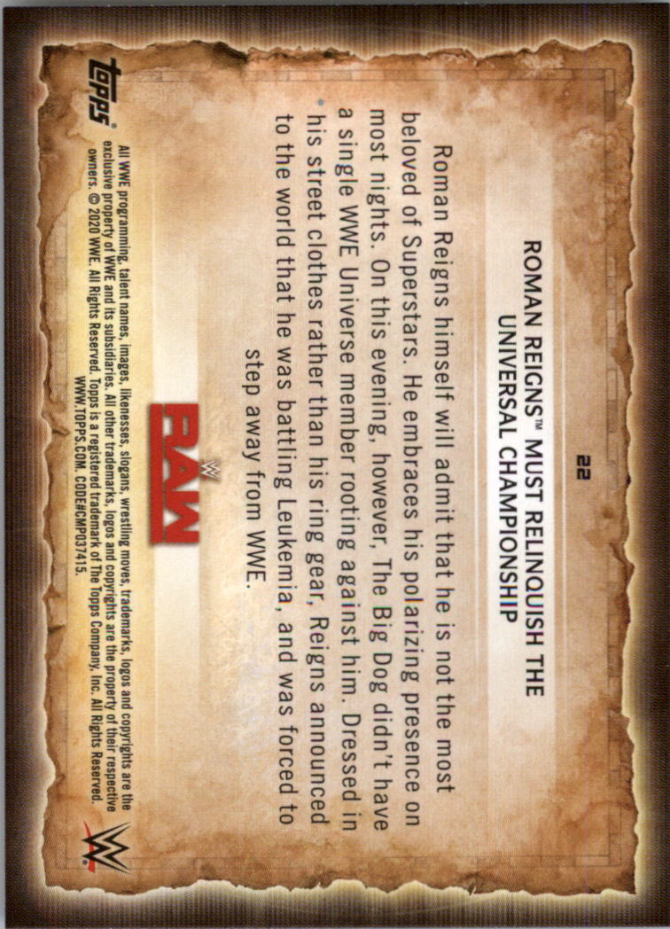 2020 Topps WWE Road to WrestleMania #22 R Reigns Must Relinquish Universal Champ