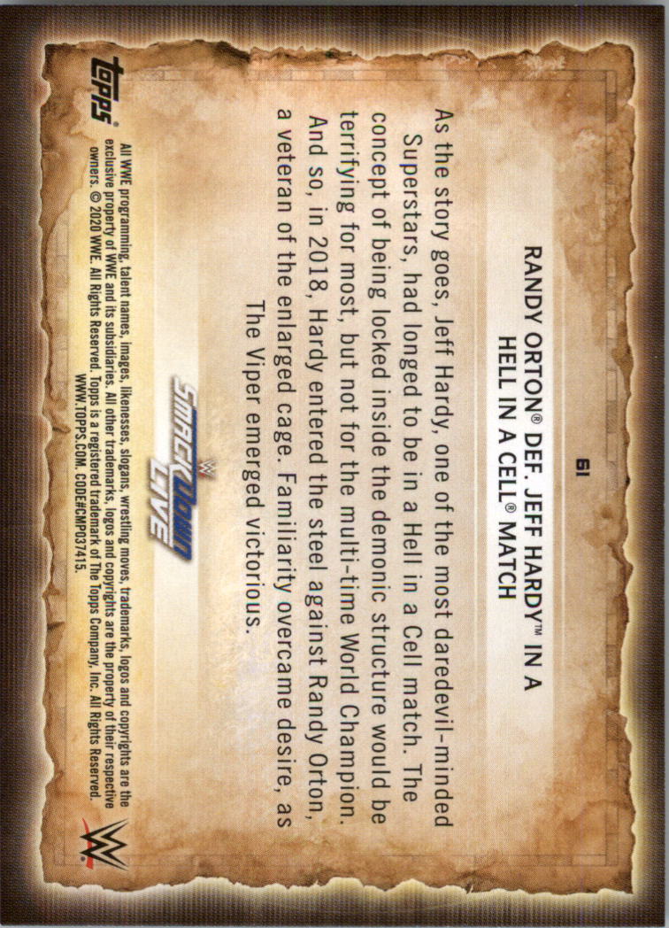 2020 Topps WWE Road WrestleMania #61 Randy Orton Def Jeff Hardy Hell Cell Match