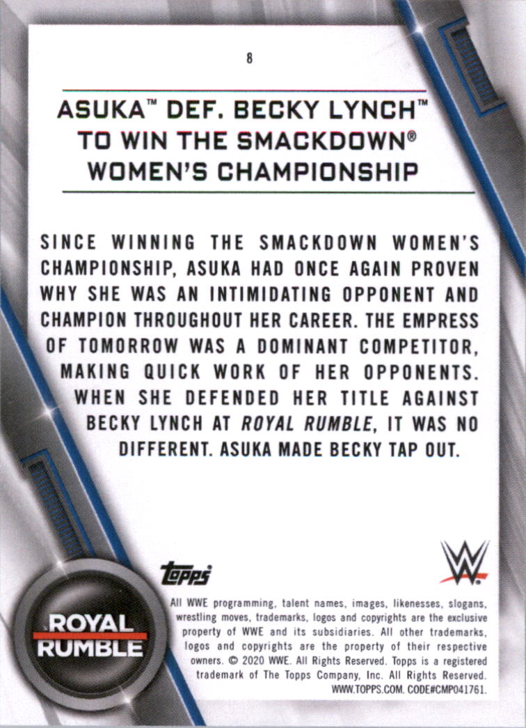 2020 Topps WWE Women's Division #8 Asuka Def B Lynch Win SmackDown Womens Champ