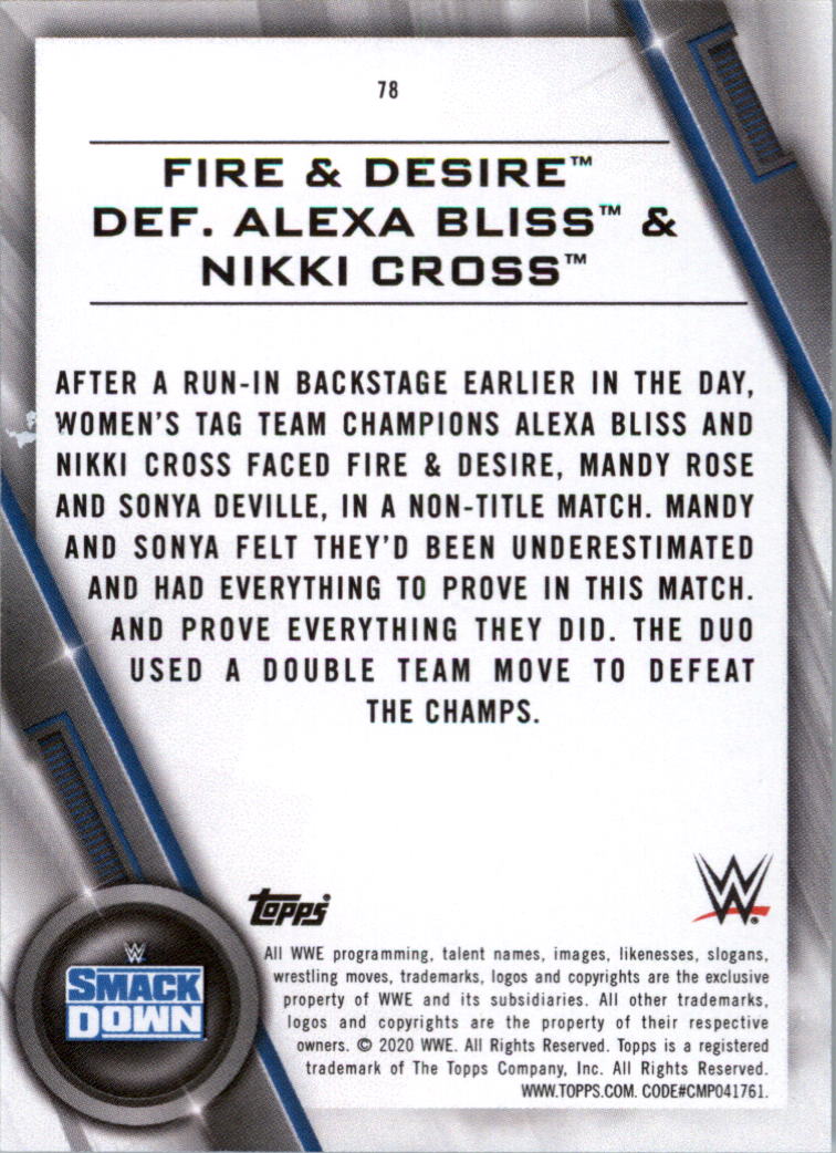 2020 Topps WWE Women's Division #78 Fire & Desire Def. Alexa Bliss & Nikki Cross