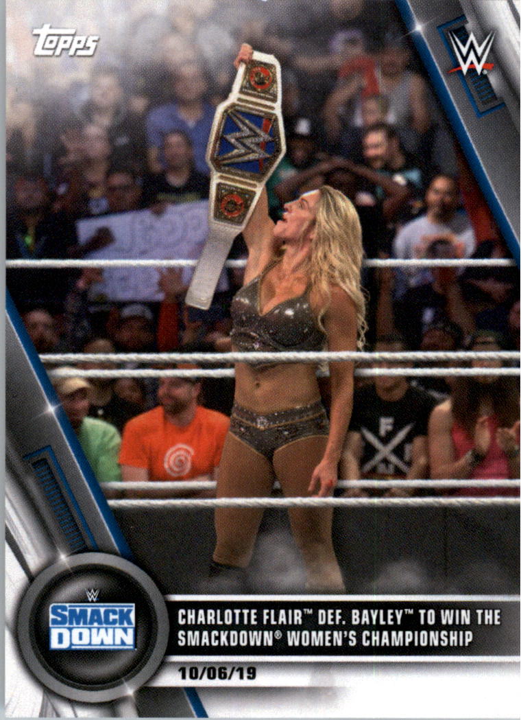 2020 Topps WWE Women's Division #90 C Flair Def Bayley Win SmackDown Women Champ