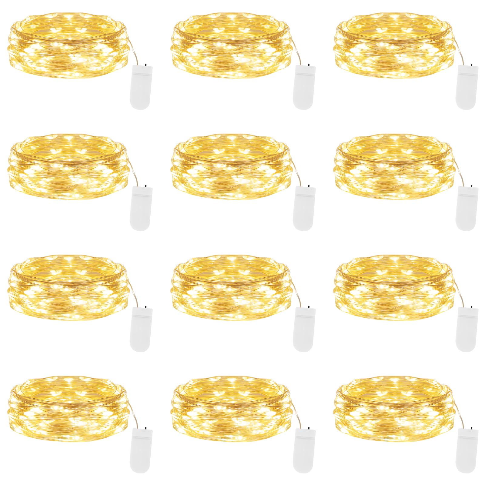 - 【12-Pack Battery Operated LED Fairy Lights】 Powered by 2 CR2032 batteries, the battery operated LED fairy light sets feature 20 energy-efficient micro fairy light LEDs on ultra-thin silver wire, creating delicate silver wire starry moon lights. Perfect as mini fairy lights for mason jars, wine bottles, vases, DIY crafts, wreaths, centerpieces, gift wrapping, and especially charming fairy lights for weddings, they effortlessly add a soft, magical glow to any special moment.