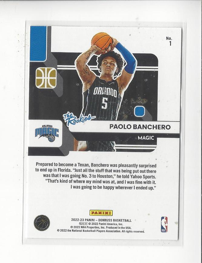 2022-23 Donruss The Rookies #1 Paolo Banchero RC Rookie Magic