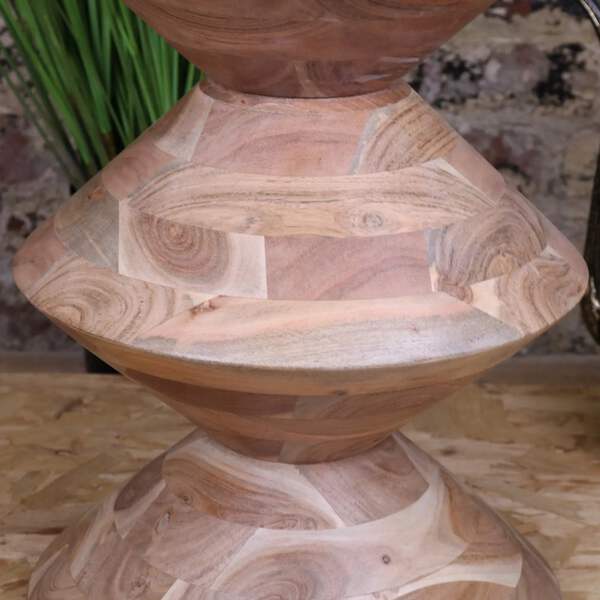 The Ujha Totem Side Table is a striking piece of furniture that blends traditional craftsmanship with contemporary design. Crafted from high-quality acacia wood, this uniquely shaped table features a totem-inspired structure that adds character and visual interest to any room. The natural wood finish highlights the organic patterns of the acacia, giving the table a warm, earthy appeal.