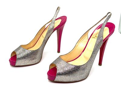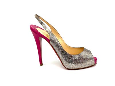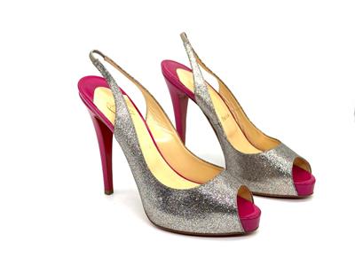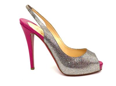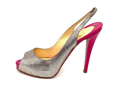 The sparkling glitter and patent platform of Christian Louboutin's famed No Prive pump makes for an enchanted evening.