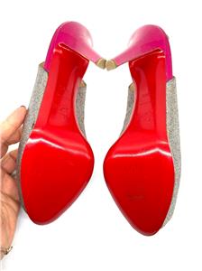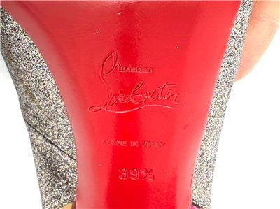 - Signature Christian Louboutin red leather outsole.