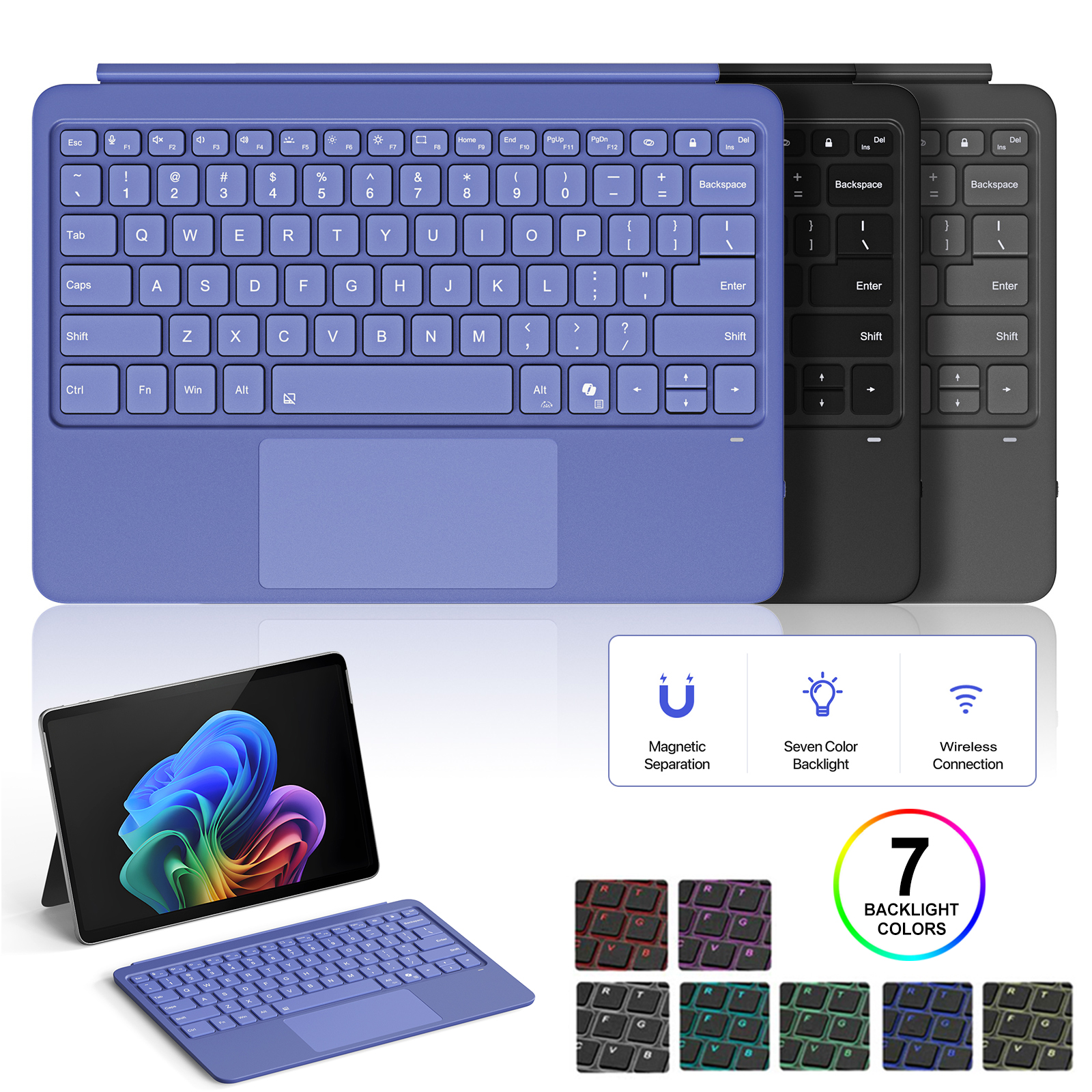 - Magnetic Strip for Easy Attachment: The keyboard easily attaches to your device with a strong magnetic strip, offering secure and hassle-free attachment and detachment for convenient portability.