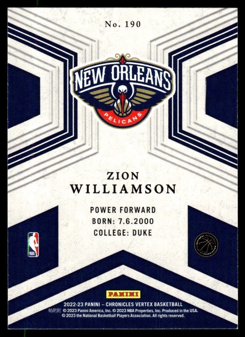 | 2022-23 Panini Chronicles Vertex Zion Williamson New Orleans Pelicans #190 |