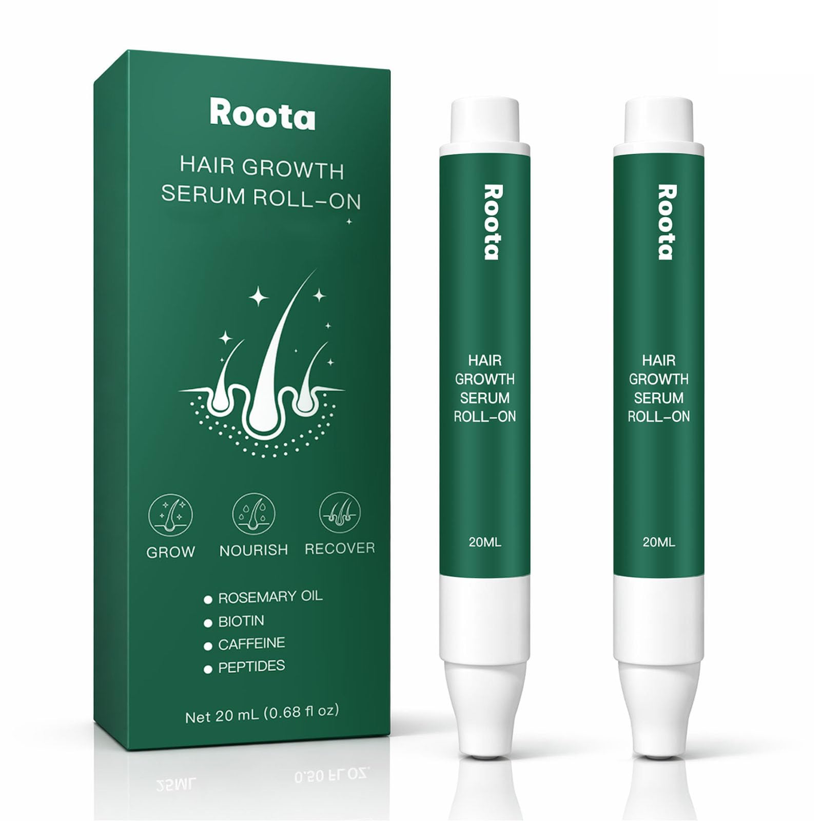 Roota Hair Growth Serum Roll-On, 1 Fl Oz (Pack of 2), clear