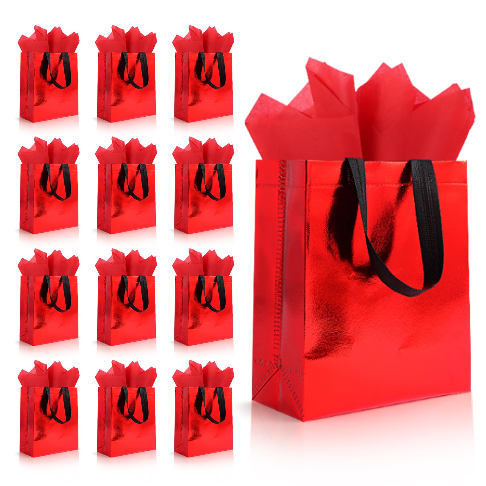 1.Make every gift unforgettable with our reusable gift bags—the stylish, sustainable choice for any occasion. Crafted from high-quality non-woven fabric, these lightweight yet durable bags are designed to be used again and again, offering an eco-friendly alternative to disposable packaging. 2.Waterproof and tear-resistant, each bag features a special coating and reinforced handles that easily carry heavier items like books, wine bottles, cosmetics, and snacks. Whether you choose iridescent, metallic, silver, or holographic styles, these bags bring a touch of shimmer and joy to birthdays, weddings, baby showers, holidays, and corporate events. 3.Each set includes everything you need: multiple gift bags with handles and matching tissue paper for a complete, ready-to-use wrapping solution. The blank design invites creativity—decorate, draw, or personalize each bag to match your theme or make it uniquely yours.Ideal as party favors, retail packaging, or personal gifting, these versatile and charming bags are perfect for women, men, and all ages. Choose durability, style, and sustainability—elevate your gifting with bags that are made to last and lovely to give.