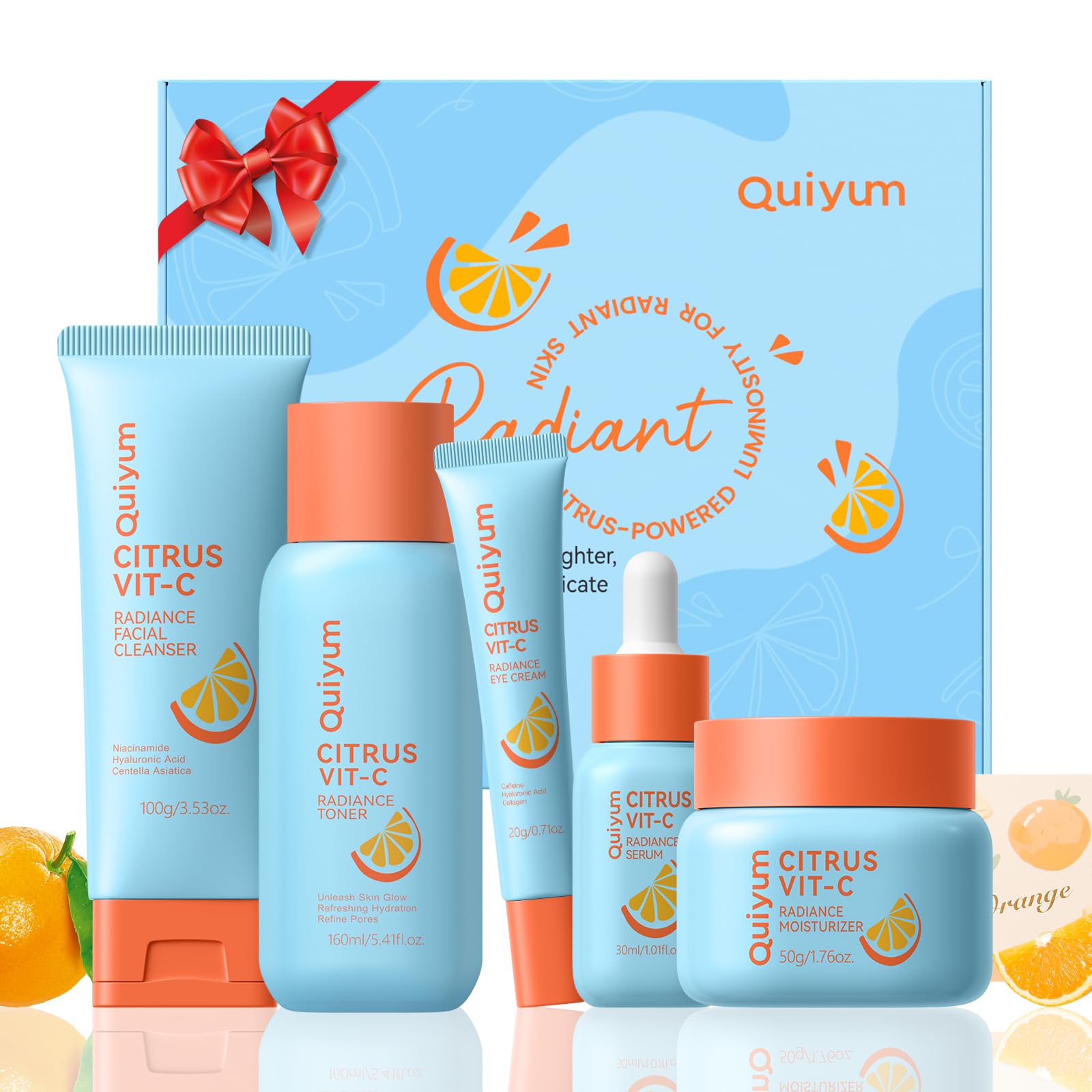 QUIYUM Citrus Vitamin C Skin Care Set, Skincare for Women & Teens 5PCS, Blue