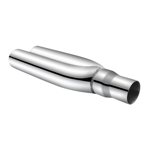 Dimension: 2.5 inch inlet diameter; 3 inch outlet diameter; overall length:19 inch; Only universal fits 2.25"-2.5" outer diameter of trucks car exhaust tailpipe, (note: please measure dimension to make sure it will fit before purchasing, if your exhaust pipe is smaller or bigger than 2.25"-2.5",please buy adaptor pipes to fit for it )